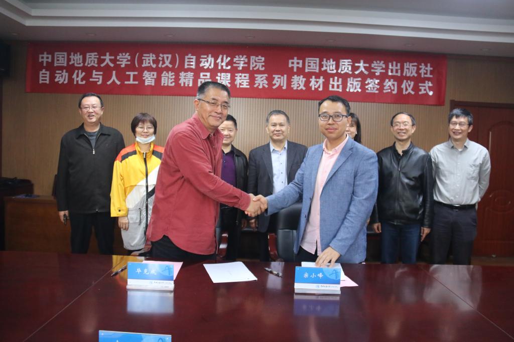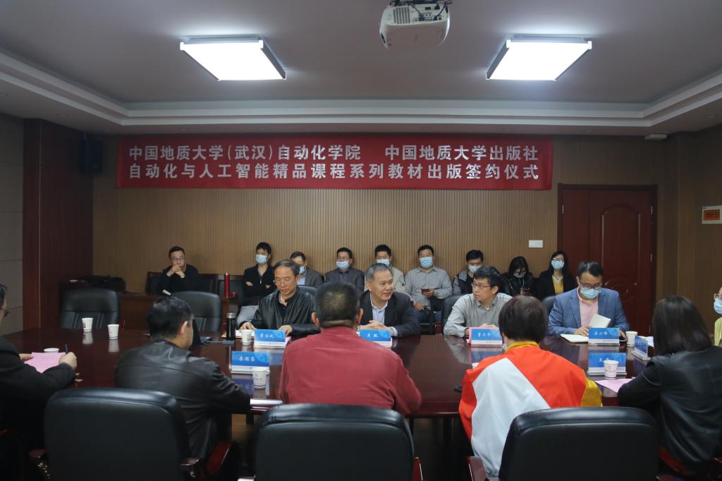 组织建设的“自动化与人工智能精品课程系列教材”出版签约仪式在信息楼316会议室举行。中国地质大学出版社党委书记兼总编辑李国昌、社长毕克成等领导及相关负责人,中国地质大学教务处副处长王莹,韦德博彩官网