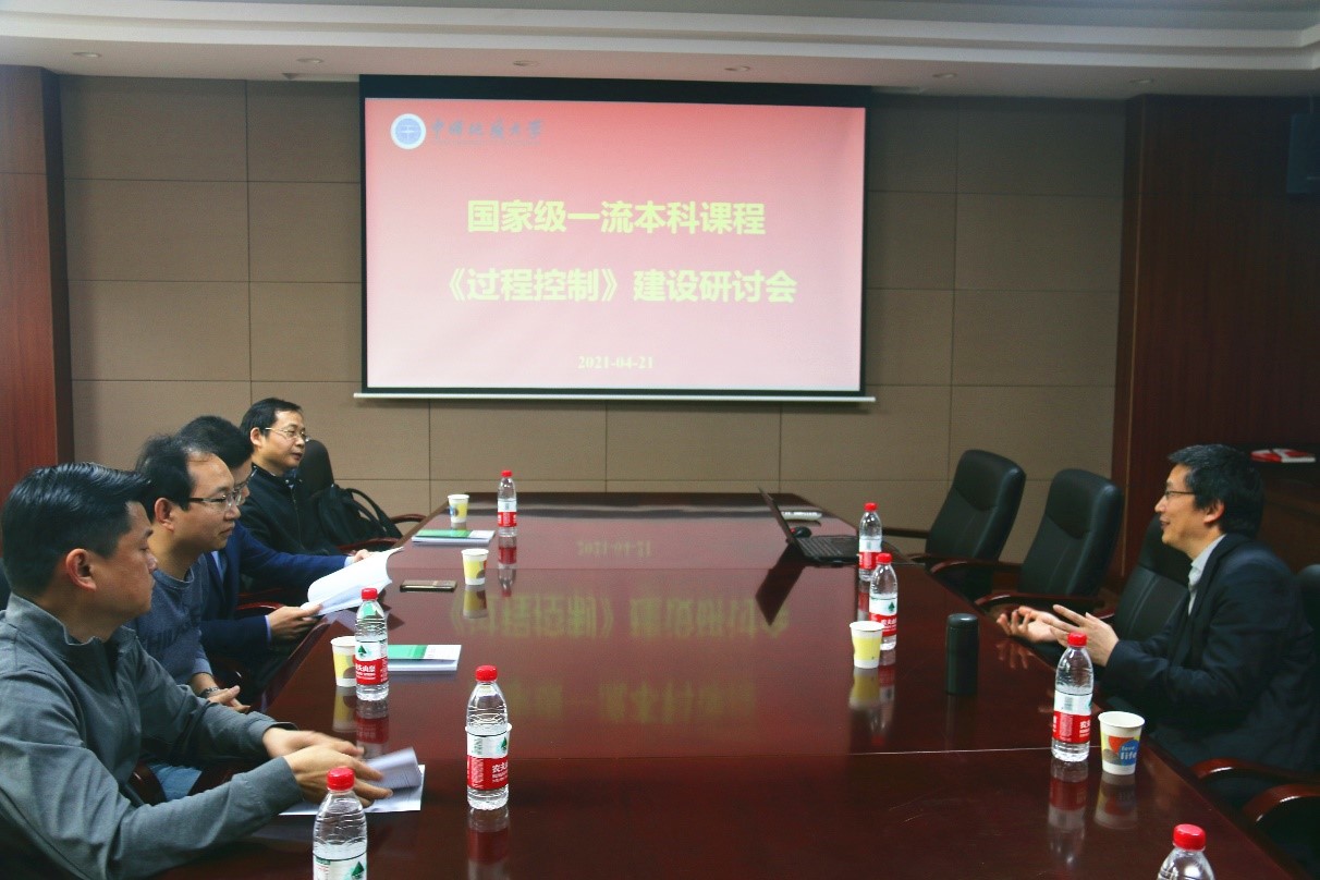 教师曹卫华教授、何王勇讲师研讨国家级一流本科课程《过程控制》建设。与会专家立足于企业对本科毕业生的需求和能力要求,结合自身的研发、管理经验,指出高速发展的社会需要综合型、复合型人才,高校教学应充分了解企业需求,与时俱进,并对课程建设、教材建设提出了宝贵建议。