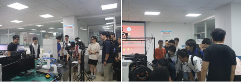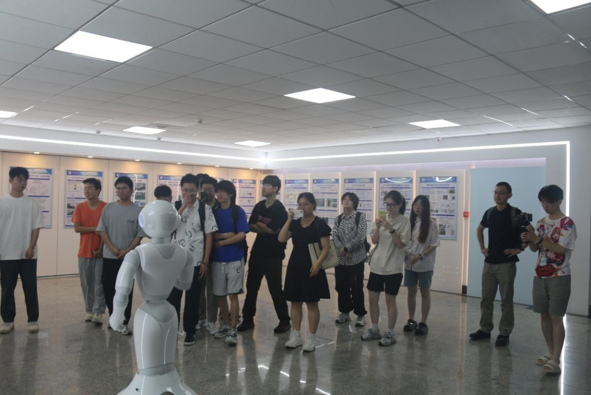 师生交流会结束后,同学们在范海鹏老师的带领下,参观了韦德博彩官网 的实验室,在“小派”导览机器人、研究生学长学姐们的讲解下,同学们具体地了解了每一个实验室的研究方向及研究成果,感受到了学院的研究氛围,对学院产生了浓厚的兴趣。