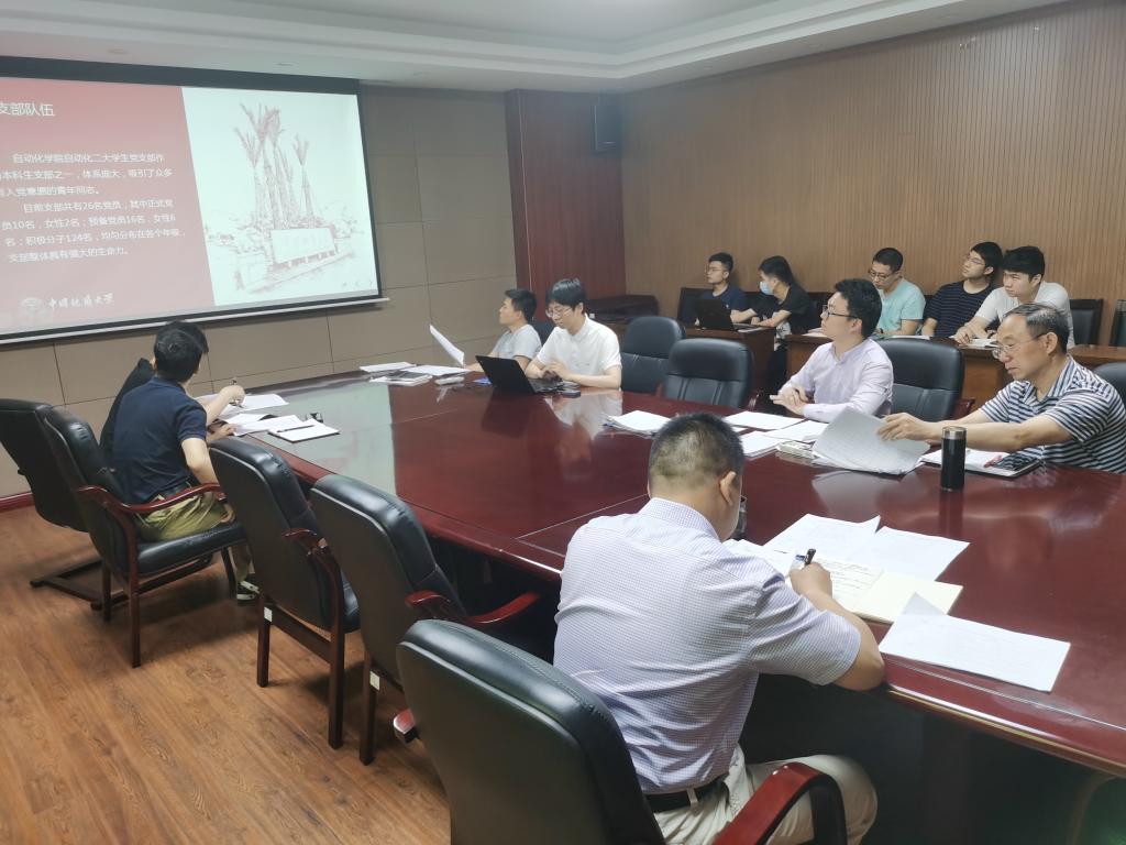 本次共有9个学生党支部参加先进基层党组织的评选答辩,各支部书记围绕党员发展、特色亮点、支部展望三方面进行汇报。本科生党支部认真开展党史学习教育,深入学习习近平总书记在党史学习教育动员大会上的重要讲话精神。党支部加强党史学习教育,提高党员思想觉悟,发挥党员模范作用,密切联系师生群众,加强思想价值引领;自动化专业大学生第二党支部发挥专业优势,承担学院党建系统开发工作,利用数据库存储党员信息,提高查询和更新的效率。