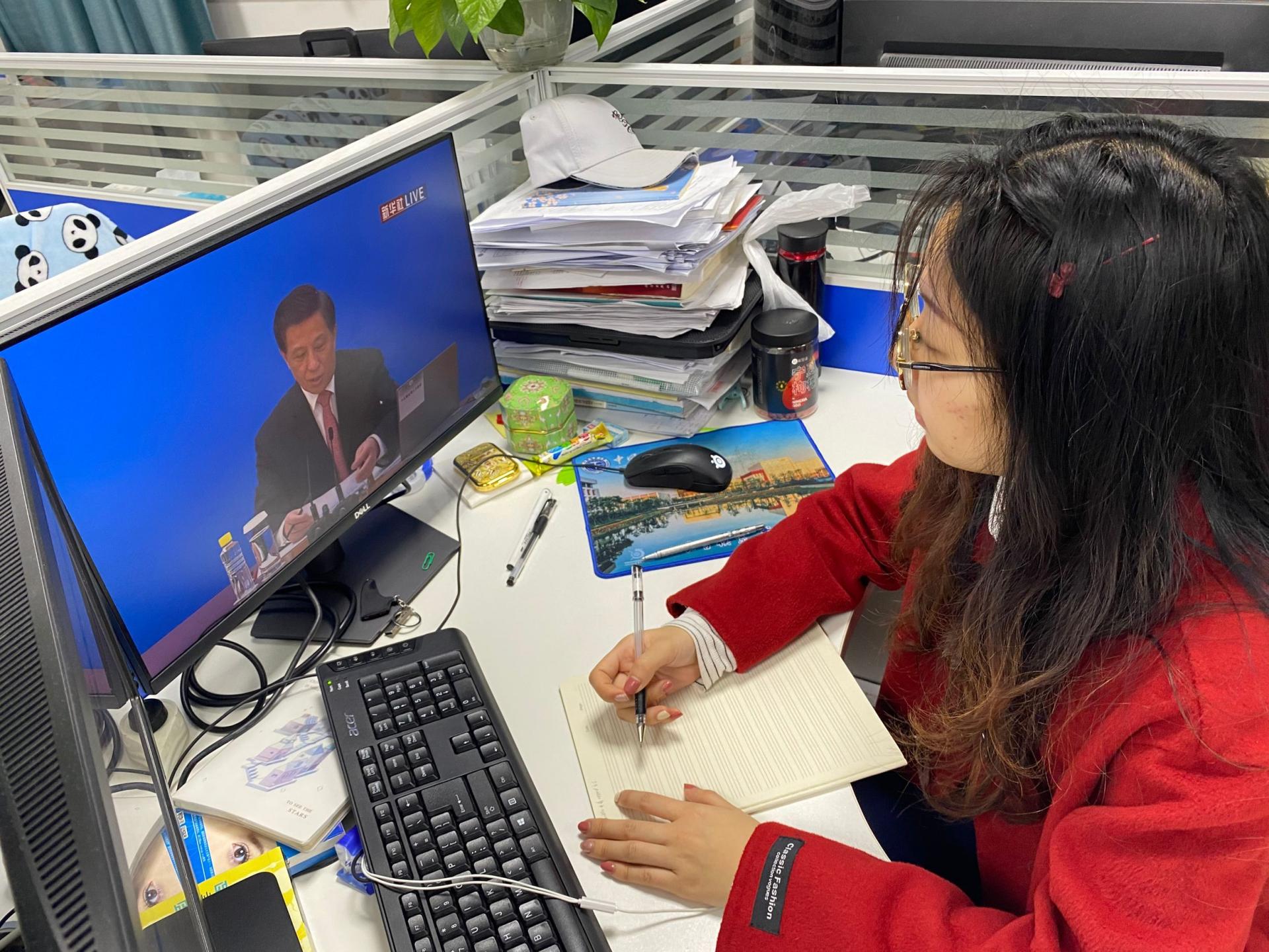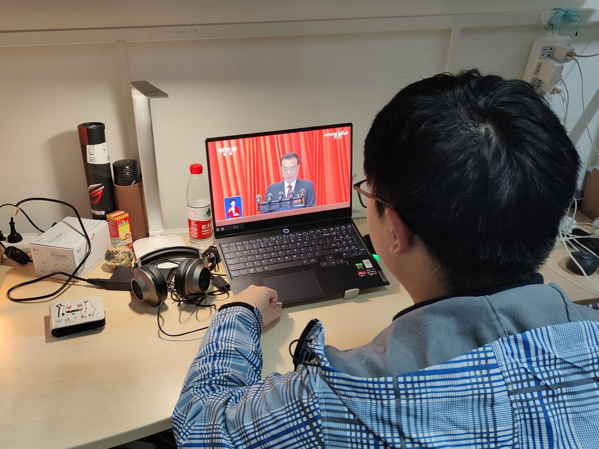 由于疫情的影响,我们支部组织党员们在腾讯会议集体观看了“两会”的直播,观看学习两会报告后,我感触颇多、受益匪浅。作为一名学生党员,我们需要积极响应组织号召,努力为科研做出贡献,脚踏实地学习,敢于迎难而上,为实现目标而努力奋斗。作为班长,我将组织开展好凝聚人心、弘扬正能量的文体活动,努力展示研究生的风采。两会不仅充分展示了中华民族腾飞的浩然气势,而且为祖国增添无尽的腾飞力量,使中国向更高更远的高空奋力飞翔。