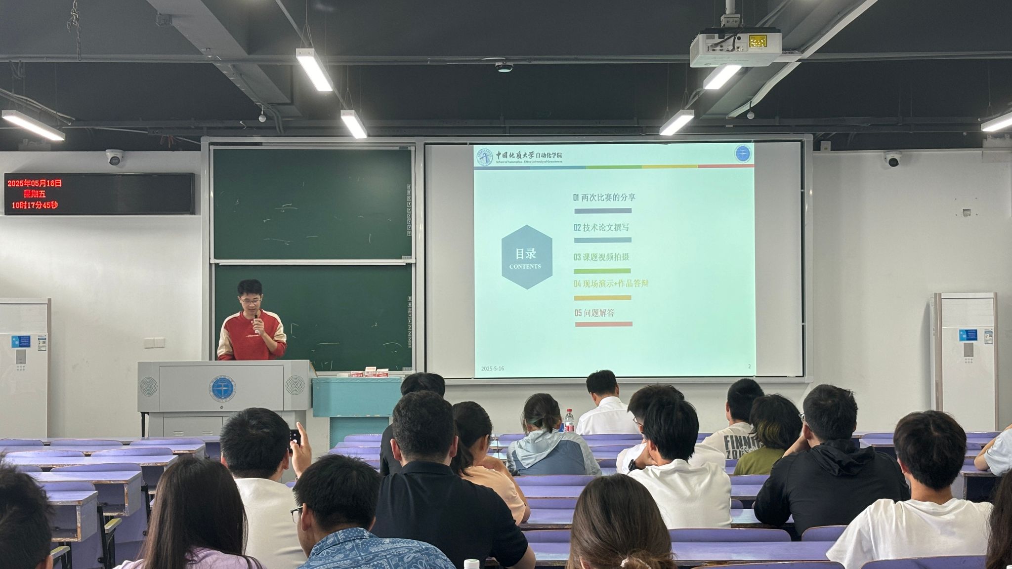 张思维从技术论文撰写、课题视频拍摄再到现场演示和作品答辩,全链条、多维度解析研电赛,详细展示了项目从构思到落地的完整路径。他建议同学们精准对接国家战略,选取满足时代背景趋势、符合社会期望的创新性选题,在科研实践中培育高质量项目,在学术研究提升理论深度,为后续的比赛环节奠定坚实基础,助力作品在竞赛中斩获佳绩。