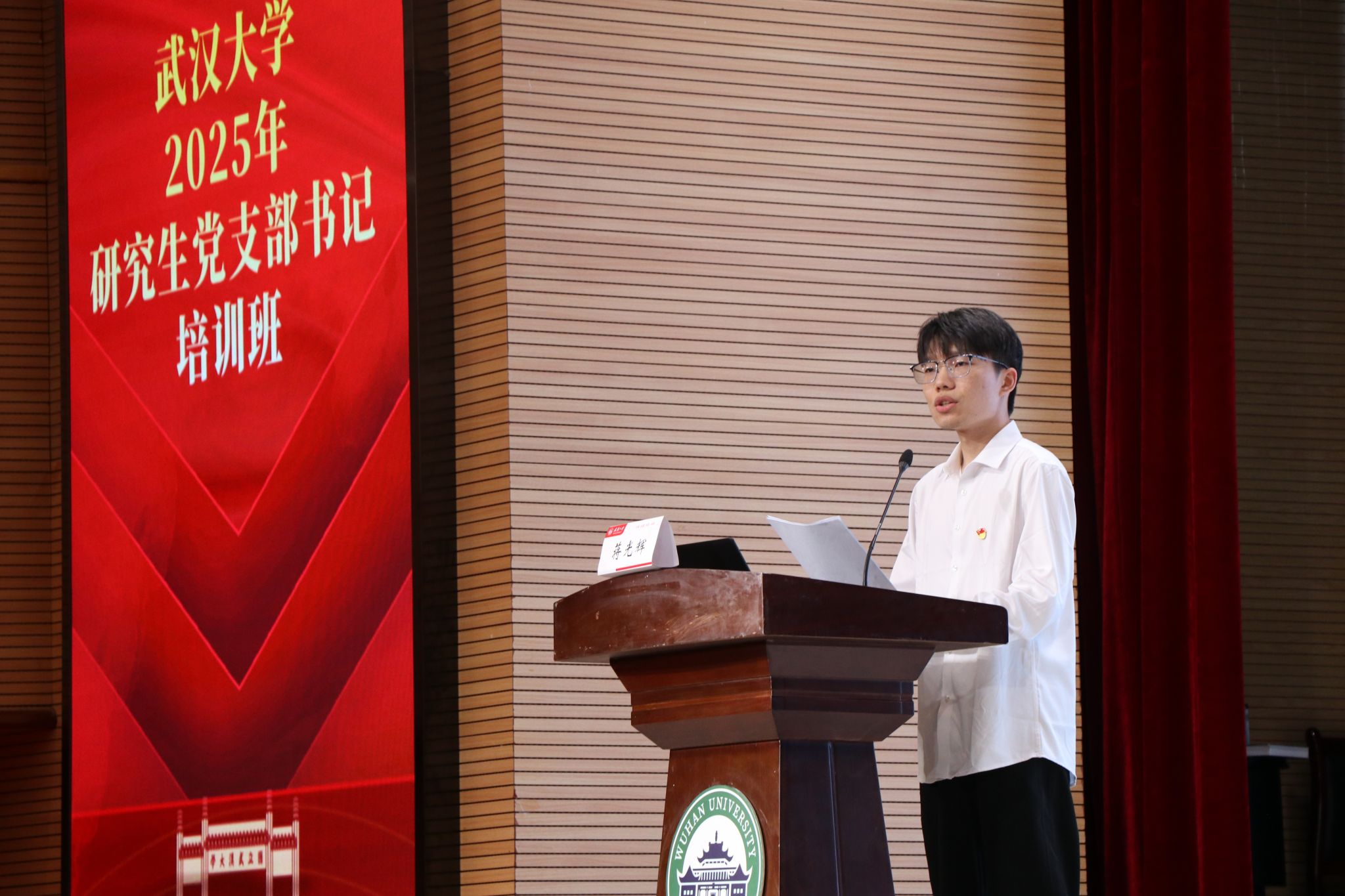 控制科学与工程博士生第一党支部(以下简称“博一党支部”)受邀参加武汉大学2025年研究生党支部书记培训班及样板党支部对话活动,分享党支部建设经验与特色品牌。武汉大学、华中科技大学、华中农业大学的全国样板支部书记出席,武汉大学研究生党支部书记培训班全体成员参加培训。