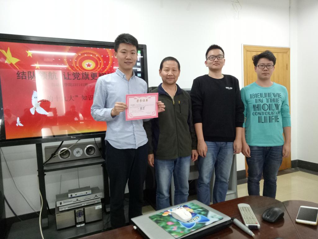 231141班、231142班以“结队领航,让党旗更辉煌”为主题的党的十九大知识竞赛在师生的积极筹备下如期进行。知识竞赛于当天中午十二点半在信息楼603正式开始,参与本次活动的有陈珺、蔡鄂、龚文芳、王永涛、谢桂辉五位老师以及231141班和231142班包括党员和积极分子在内的17位同学。