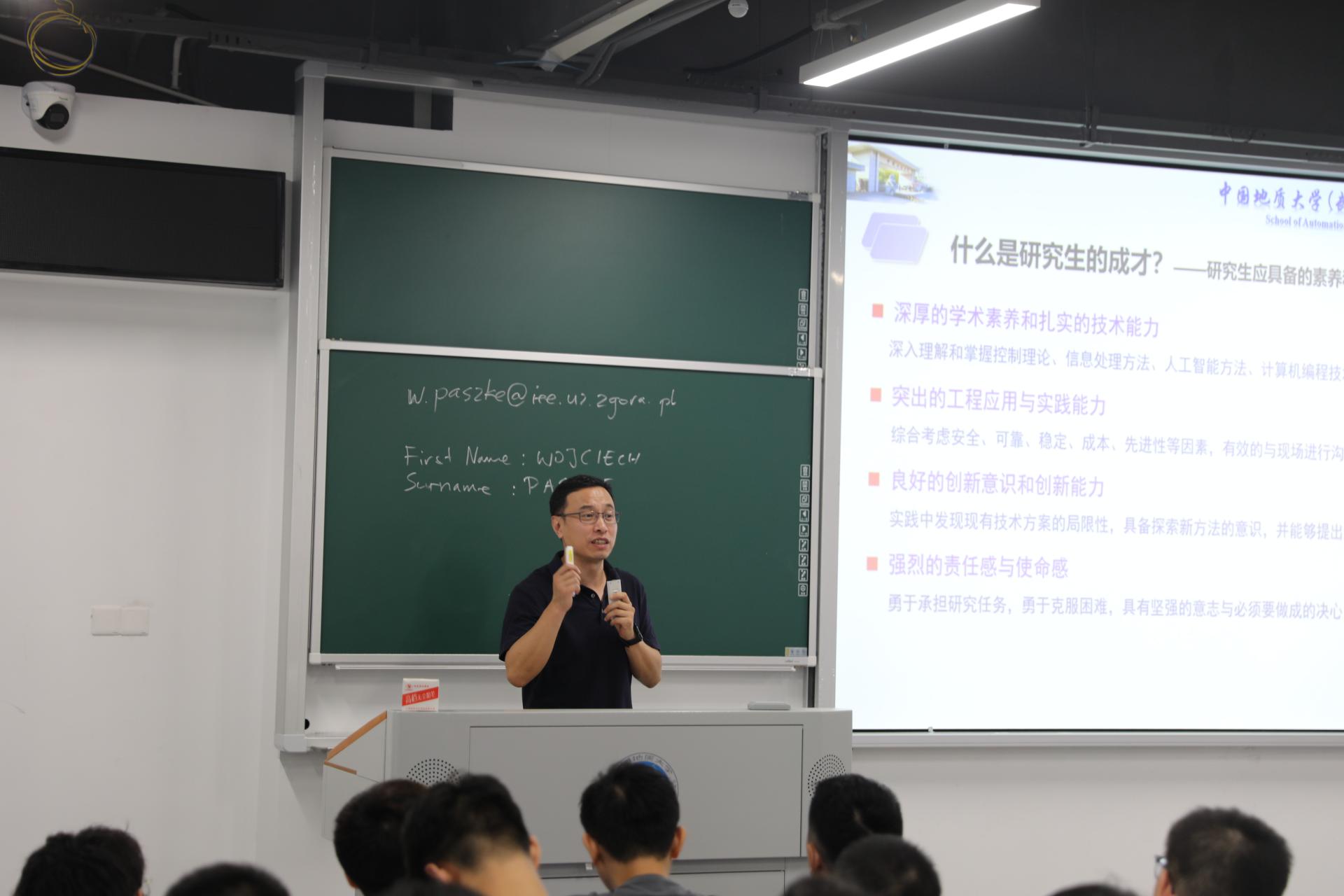 为引导研究生新生坚定理想信念,端正学习态度,把握科研方向,9月11日下午,韦德博彩官网 在教三楼306开展“研究生‘开学第一课’——论文写作与项目研究”专题讲座,讲座邀请波兰绿山大学Wojciech Paszke教授,韦德博彩官网 安剑奇教授做主题分享,副院长陈略峰教授、党委副书记王向东、自动控制系万雄波教授、研究生辅导员王艺霖,以及2023级研究生新生共同参加。