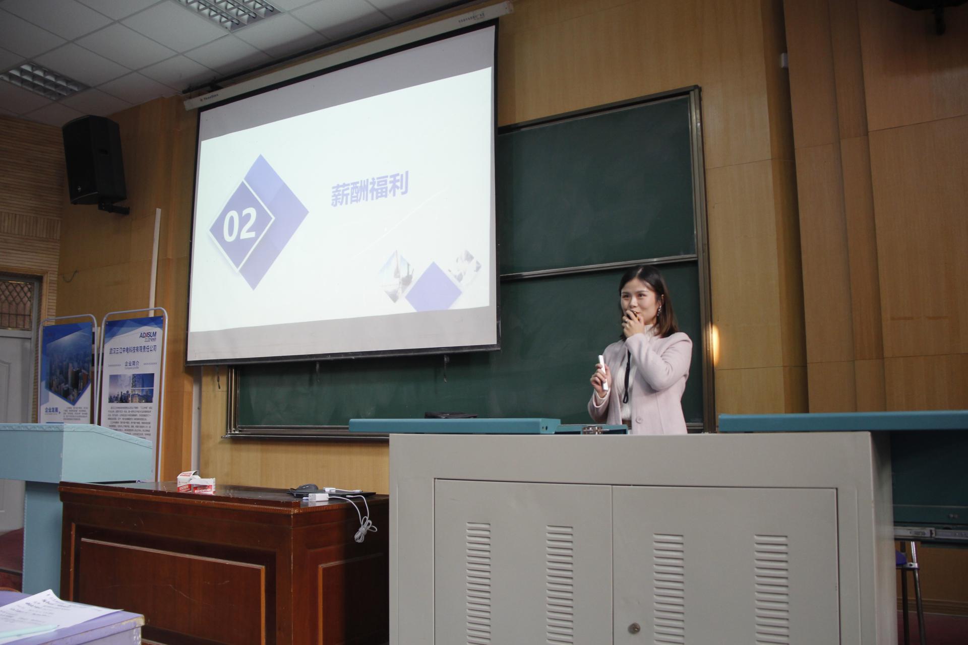首先,三江中电总经理助理韩总从专业技术角度给同学们进行分享,针对公司开发的产品和业务为同学们介绍理论知识在企业中的实际应用,从输变电在线监测、物联网系统建设和人员技能需求三个方面展开,详实丰富,现场同学们积极提问,与主讲人展开专业交流,现场气氛热烈;随后HR李佳为同学们详细介绍了三江中电公司情况、韦德博彩以及岗位介绍,帮助同学们了解市场需求。