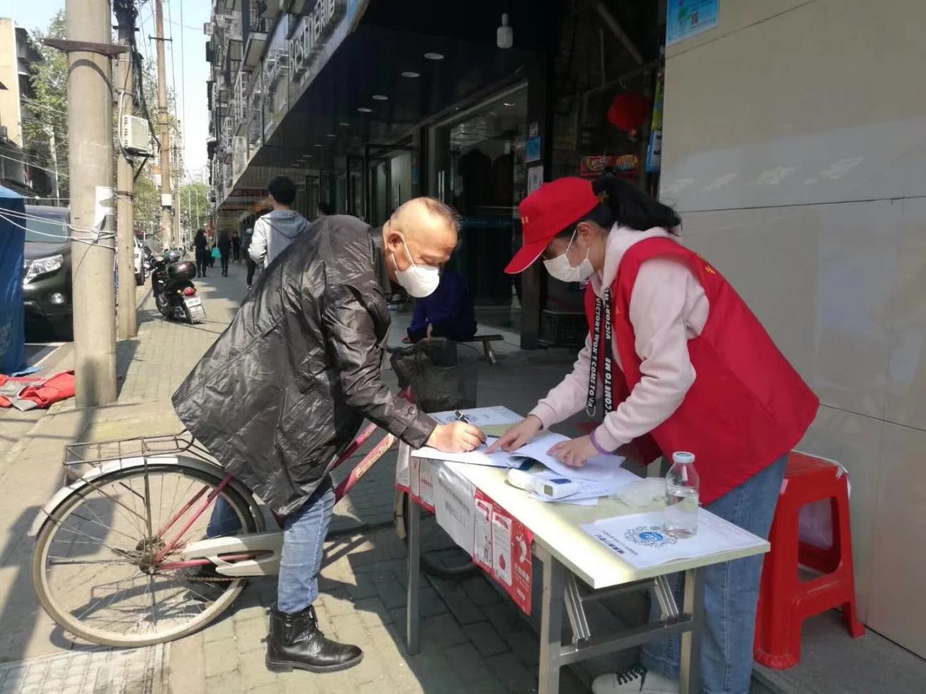 正街社区所辖的商业步行街上的商铺基本上都涉及到门面租金、人员工资发放的问题,复工复产的呼声很高。为此,社区紧急调整封控方案,将蔡正街原封闭的金三角路口打开,设立卡口,新增的卡点随着志愿者的复工缺少人员值守,我们几个大学生志愿者向社区主动请缨,轮流到卡点值守,督促居民进出扫码,维持卡口秩序,为一些没有绿码的老年居民进行出入登记。这期间,很多爷爷奶奶口罩没有戴好,我总是耐心的提醒他们有少数人嫌麻烦、不耐烦不愿意扫码,甚至有居民不听劝告,开车闯卡,面对危险,我也是和其他志愿者严格制止、耐心劝说,卡口的工作得到了大多数居民的理解和支持,就像和我一起值守的64岁的社区志愿者王爷爷说的,有时候,听到一句“谢谢”,心里就会觉得“值得”。四月六日,我看到献血的宣传,电话询问血液中心,离上一次献血不足六月,无法再次献血。