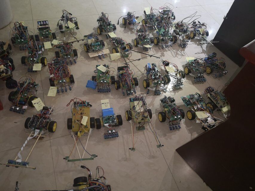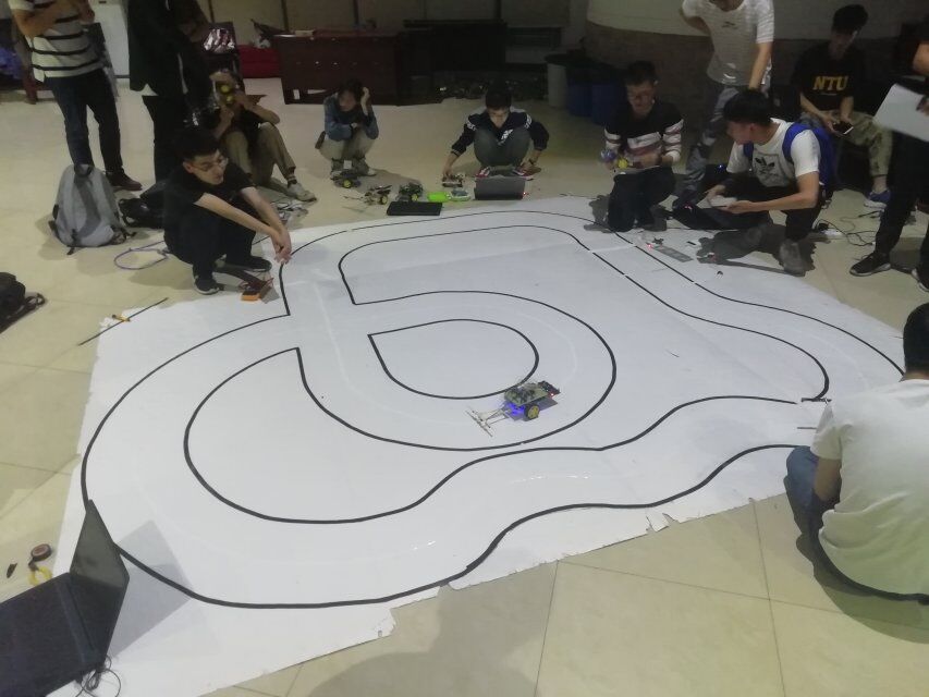 下午一点半,总决赛准时开赛。在简短的规则介绍后,各位参赛选手便开始忙碌的调车比赛阶段,在该阶段每组选手拥有一次预跑机会和三次比赛机会,成绩取自三次中最好成绩。在比赛过程中,有的选手的车风驰电掣,赢得阵阵喝彩,赏心悦目,有的选手的车稳如泰山不带一丝摆动,但是仍有部分选手的车因为某些原因遗憾与成功擦肩而过。在此期间,各位选手认认真真地排除自己可能的失误点,一丝不苟,紧抓每一个细节,尽自己的全力去争取最好的成绩。经过6个半小时的紧张角逐,大部分同学完美完成了比赛,总决赛于晚上8点正式落下帷幕,在比赛的最后参赛选手们手持自己的小车一起合影纪念这一次大赛。