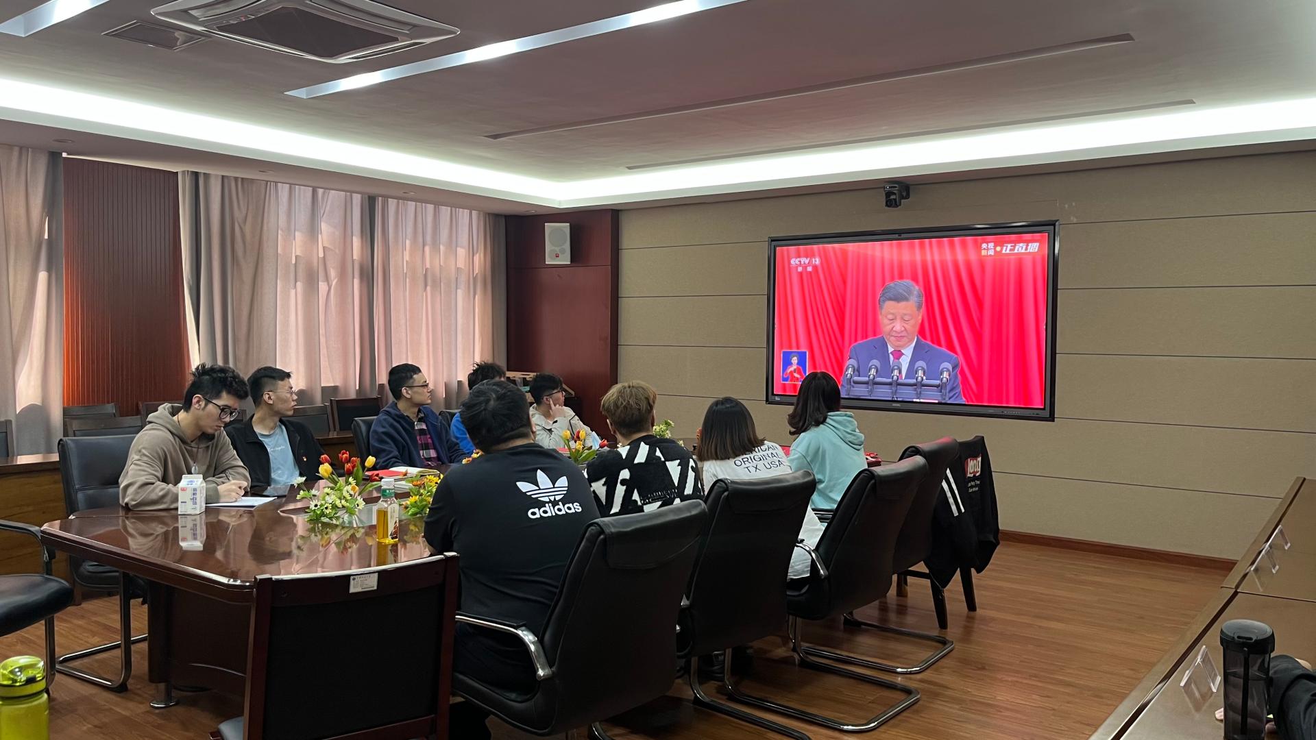 党委高度重视,第一时间精心组织师生以系所(中心)、党支部、班级、宿舍为单位进行集中收看党的二十大开幕会,认真听取习近平总书记铿锵有力的报告。大家精神振奋,热情高涨,不时爆发热烈的掌声。在聆听总书记讲话过程中,师生们认真做笔记,会后学院党委通过集中召开座谈会的形式深入学习领会党的二十大精神。