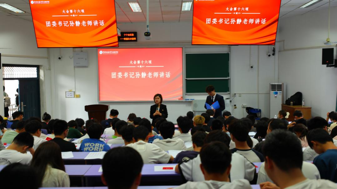 学院团委书记孙静老师讲话。她指出,学生会的工作要围绕青年、服务青年,各类团学组织应学会用党的创新理论武装自己,多多开展学生愿意参加且有所收获的活动。