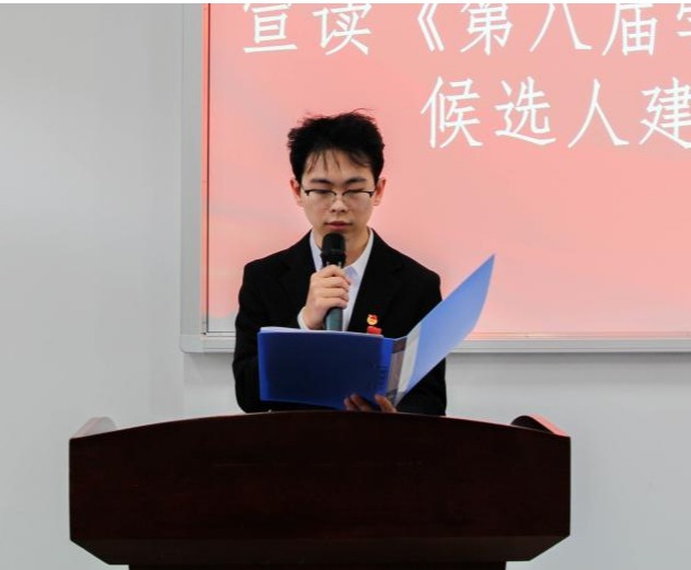 2023届团学组织负责人李想宣读《第八届学生委员会委员候选人建议名单》和《韦德博彩官网