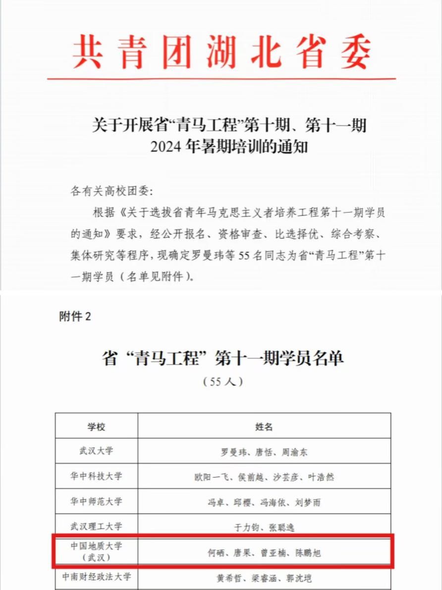 今年5月,共青团湖北省委、湖北省教育厅联合发布《关于选拔省青年马克思主义者培养工程第十一期学员的通知》,从湖北省20所高校中遴选55名大学生作为省“青马工程”第十一期学员。经公开报名、资格审查、比选择优、综合考察、集体研究等程序,韦德博彩官网