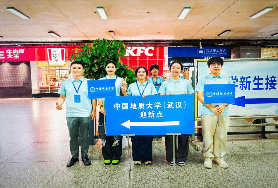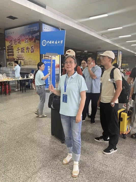 党员教师志愿者携物资早早抵达武昌站接站点,10分钟内完成迎新点布设。志愿者们统一身着“地大蓝”文化衫、佩戴工作证,高举“中国地质大学(武汉)”引导牌值守在出站口,做好迎接新生的准备工作。值守点按“南望山”“未来城”两校区设专区,指引新生和家长在对应区域集中等待,由专人清点人数、登记车辆信息并实时上传,满20人即发班车,实现接站、分流、发车无缝衔接。迎新期间,武昌站累计发班50余车次,接送新生及家长1002人,确保了无一人滞留。