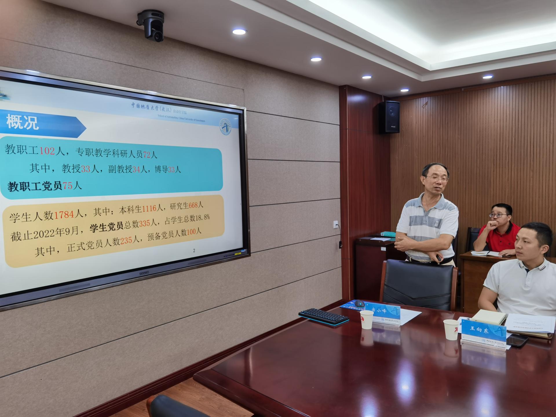 院党委书记董浩斌代表学院党委汇报了班子建设、支部设置、学院纪委组织架构、学院党建和党风廉政建设等情况。