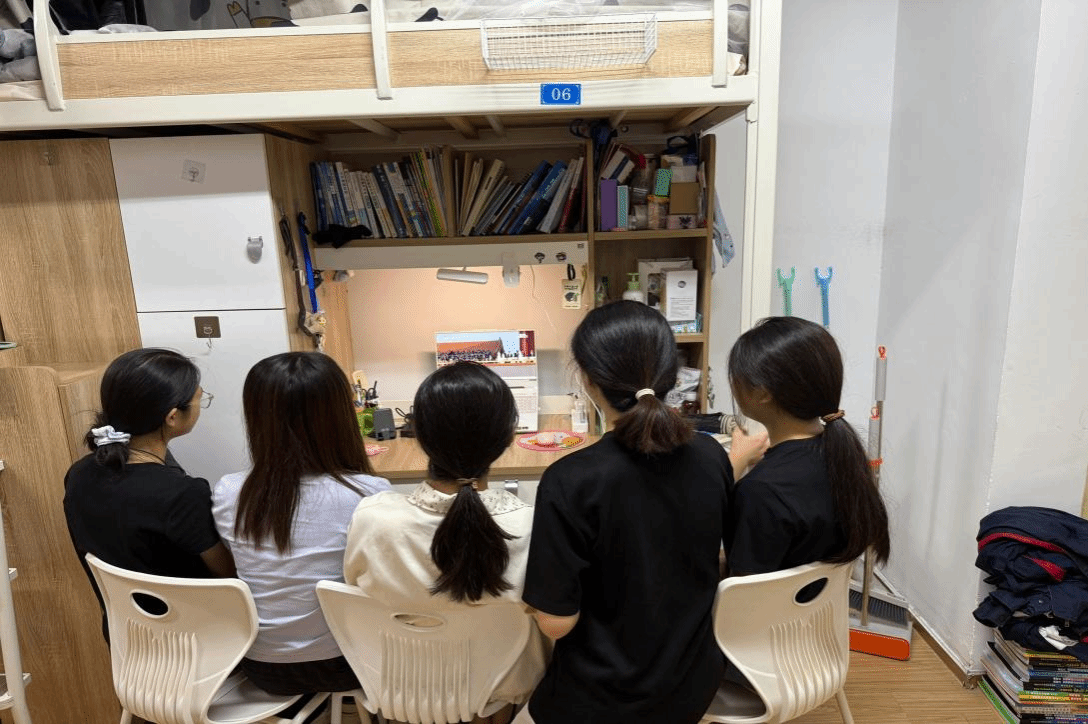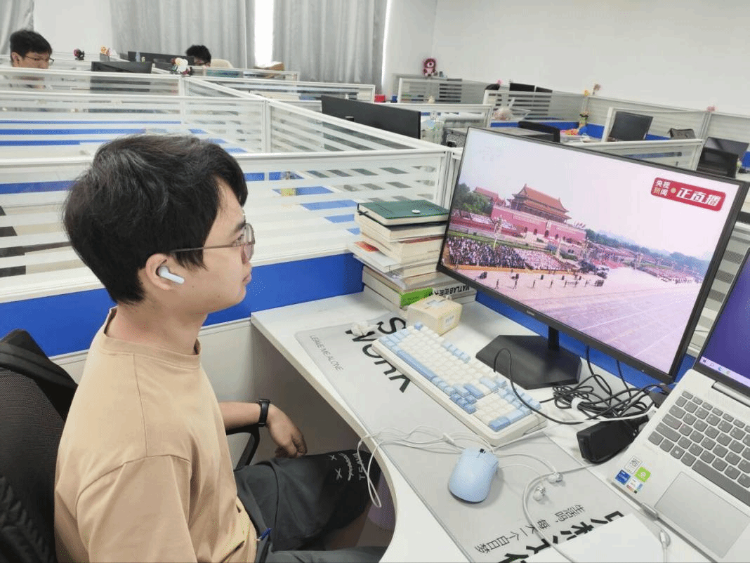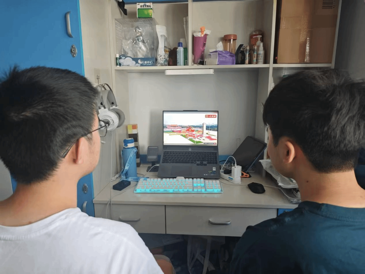 学生在宿舍、实验室等收看阅兵仪式