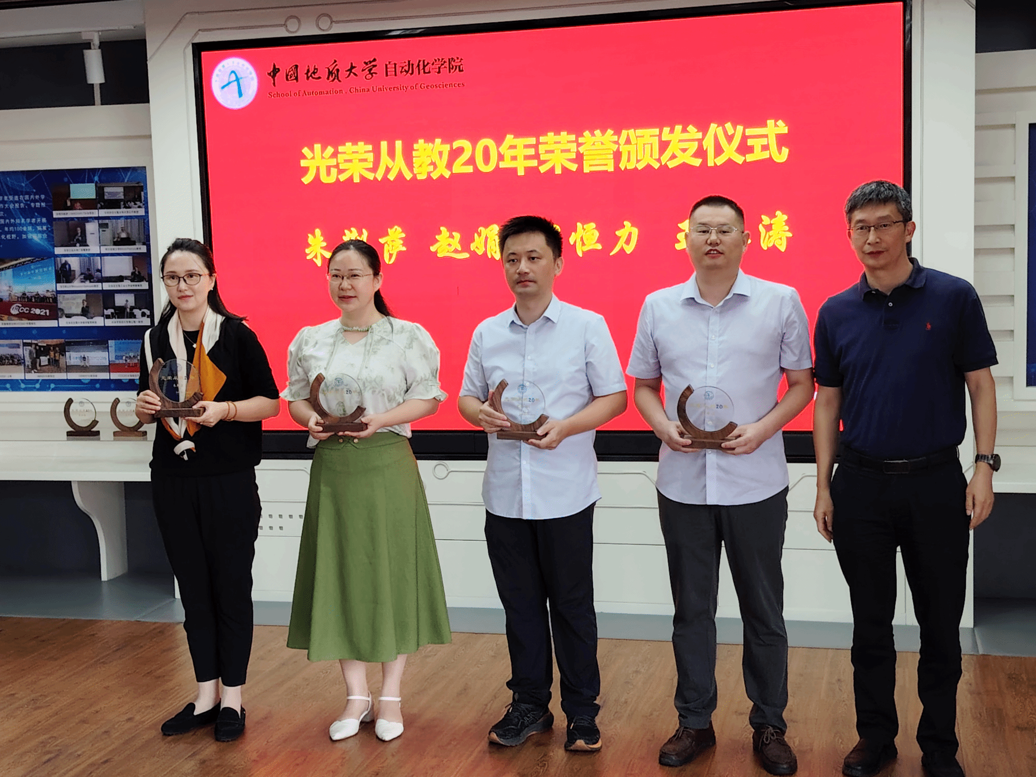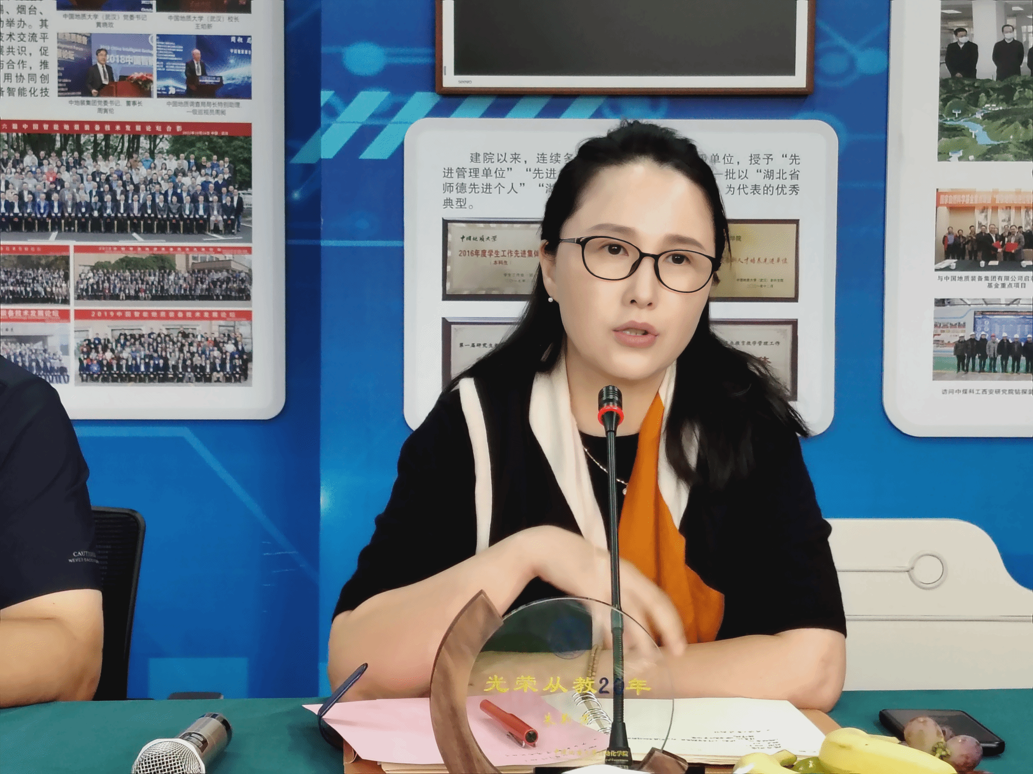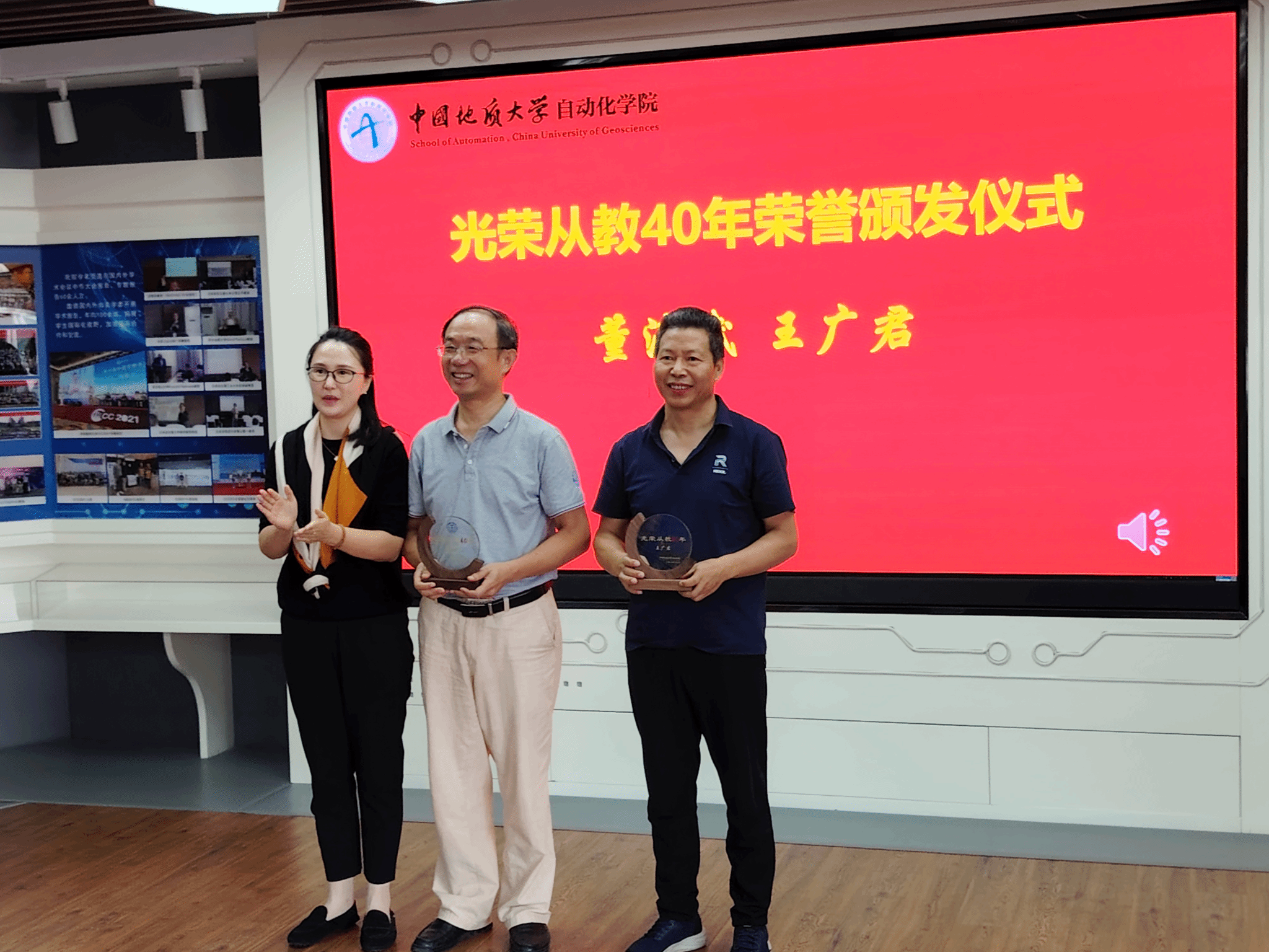 座谈会首先向六位今年适逢从教40周年及20周年的教师颁发了纪念牌,以表彰他们数十年如一日的辛勤奉献。在随后的分享环节中,六位教师依次发言,畅谈育人历程与教育感悟。董浩斌教授回顾了自己四十年来潜心教书育人的职业生涯——从辅导员到系主任,从院长到党委书记,始终扎根教学科研一线,积极推动学科与学院建设。朱荆萨书记分享了自己在校团委工作的难忘经历。她指出,地大是认可实干精神的地方,大学是塑造高尚品格的地方。作为一名光荣的人民教师,应当呕心沥血地为立德树人奉献自己的力量。