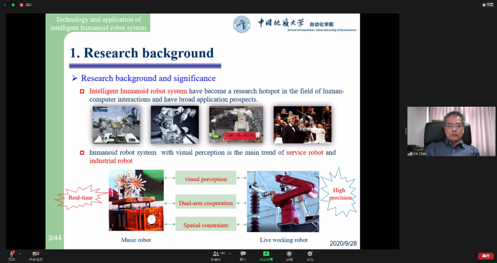 常务副院长曹卫华教授主持开幕式。中国地质大学副校长赖旭龙教授、同济大学校长陈杰院士、东京工科大学校长大山恭弘教授、IEEE总主席福田敏男教授、湖北省科学技术协会学会部陈国祥部长、湖北民族大学校长顿祖义教授先后致辞,预祝大会圆满成功。随后,加拿大阿尔伯塔大学Witold Pedrycz教授作了题为《Multiview Rule-Based Modeling and Granular Aggregation》的大会报告,日本名古屋工业大学岩崎誠教授作了题为《Motion Control for Mechatronic Systems: from Basis beyond Industrial Applications》的大会报告,日本东京工科大学Jinseok WOO教授作了题为《Development Direction of Human Coexistence Robot Partner based on Smart Device》的大会报告,北京理工大学曾宪琳副教授作了题为《Accelerated First-Order Distributed Method for Nash Equilibria of Convex-Concave Bilinear Two-Network Zero-sum Games》的大会报告,中国地质大学(武汉)陈鑫教授作了题为《Technology and application of intelligent humanoid robot system》的大会报告。