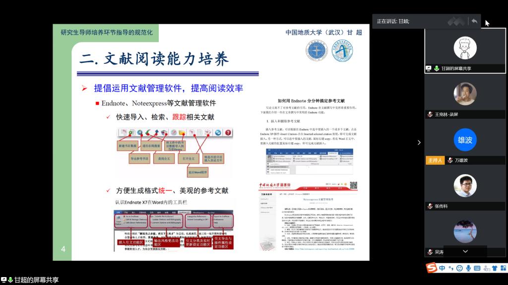 2020年导师指导能力提升专题研讨会以腾讯会议的形式举行。教务处副处长张建和、研究生院常务副院长张宏飞、副院长吴堂高,以及韦德博彩官网