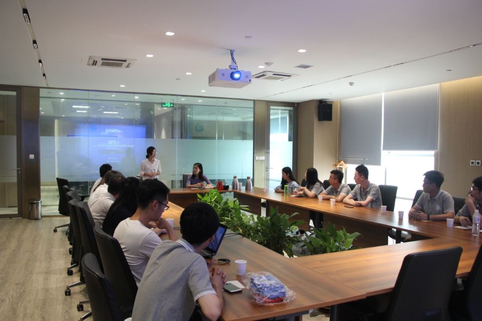 在海信电子信息集团研发中心,集团人力资源部总经理陈海燕为学员介绍该公司物联网、人工智能的发展规划,以及不同工作岗位对专业的需求。