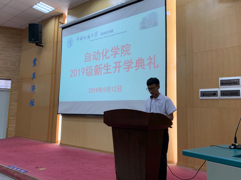 2019级开学典礼在教三楼109报告厅隆重举行。院领导吴敏、董浩斌、曹卫华、何建新,各系(中心)主任,教师代表,学工组老师及2019级全体本科、研究生新生参加典礼。院党委副书记何建新主持典礼。