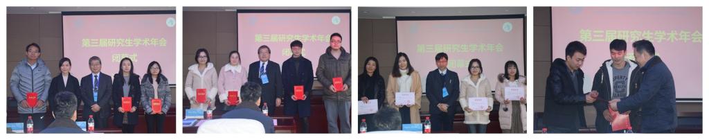 《关于表彰2017年研究生科技论文报告会优秀论文奖的决定》和《关于表彰2017年研究生学术奖的决定》。与会领导和嘉宾对获奖学生进行了颁奖。