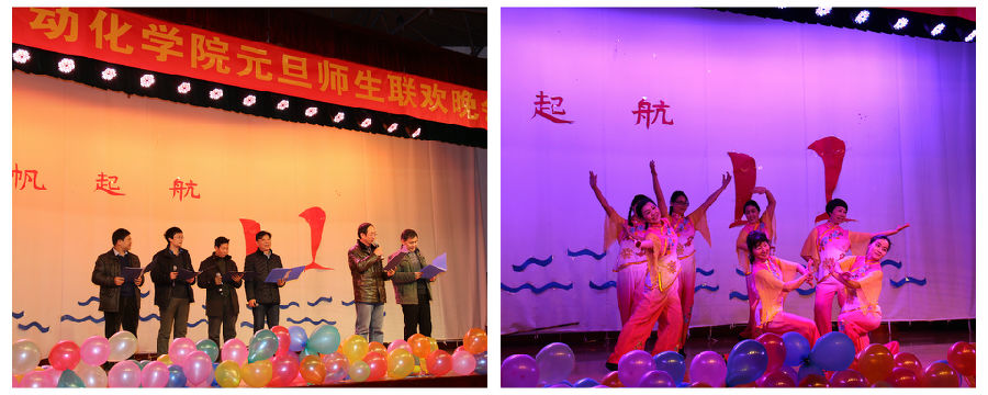 师生元旦师生联欢晚会隆重举行。校工会副主席李国昌、全院学院领导及教职工、全院研究生及本科生欢聚一堂、辞旧迎新。