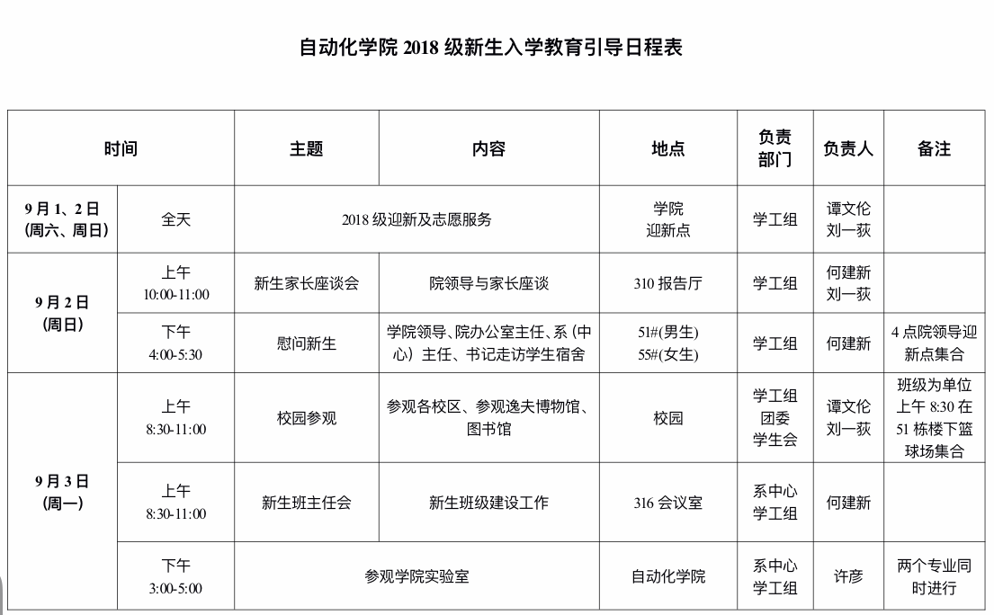 2.学院各单位要高度重视新生入学教育引导工作,各项教育活动要指定专人负责,抓好具体落实,创造性开展工作。