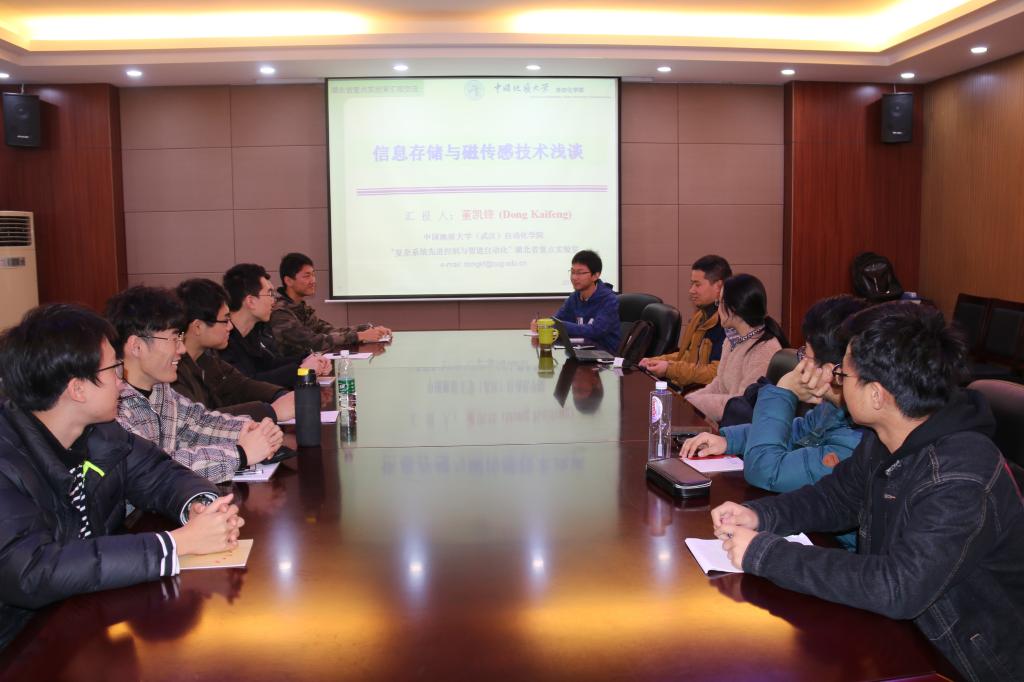 会上,董凯锋教授讲述了信息存储和磁传感技术的发展历史及研究现状,介绍了他的研究内容、方向和成果,以及现有科研团队情况等。