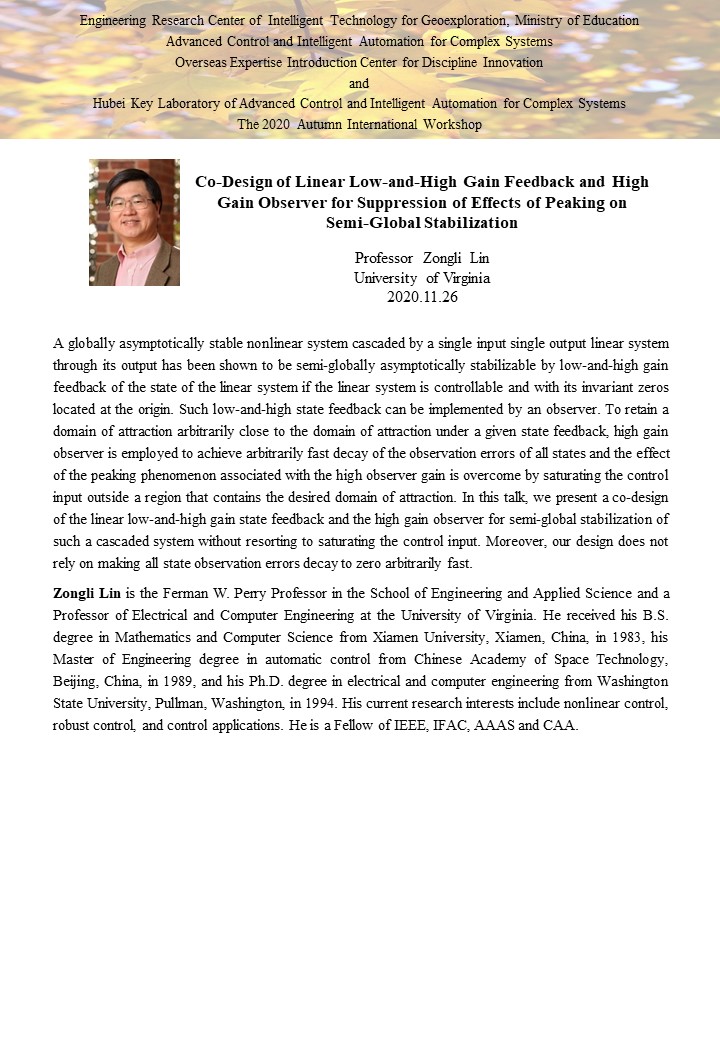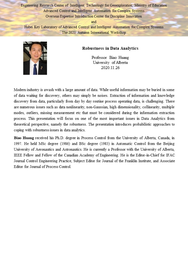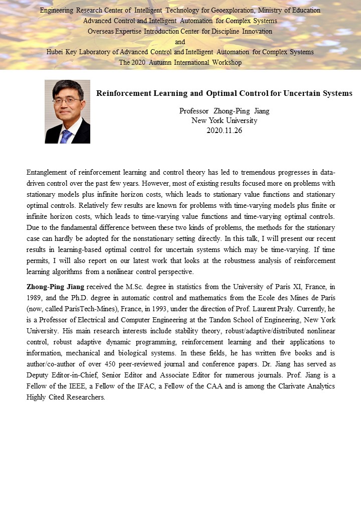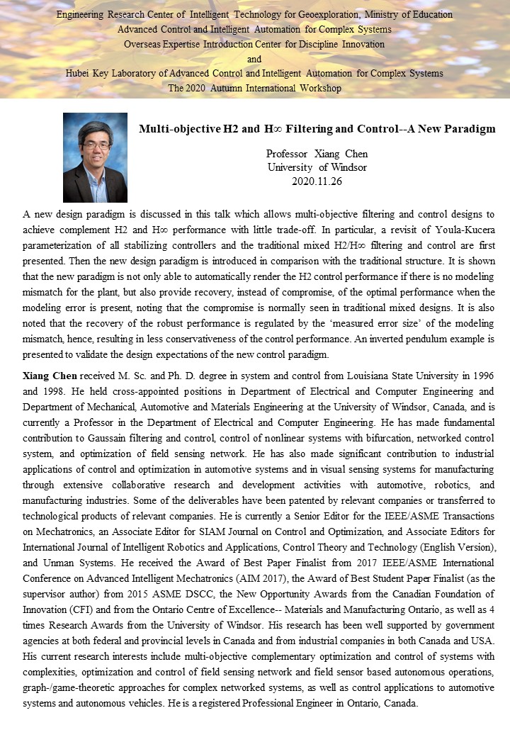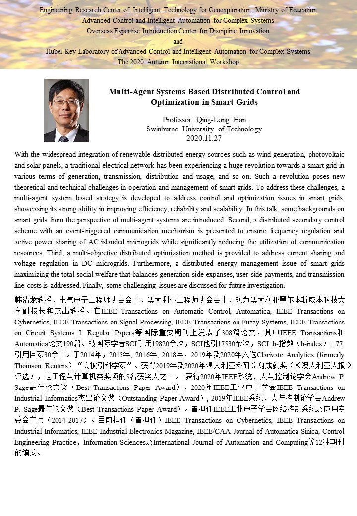 复杂系统先进控制与智能自动化2020年秋季国际学术研讨会