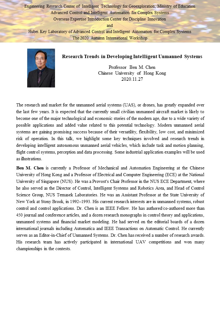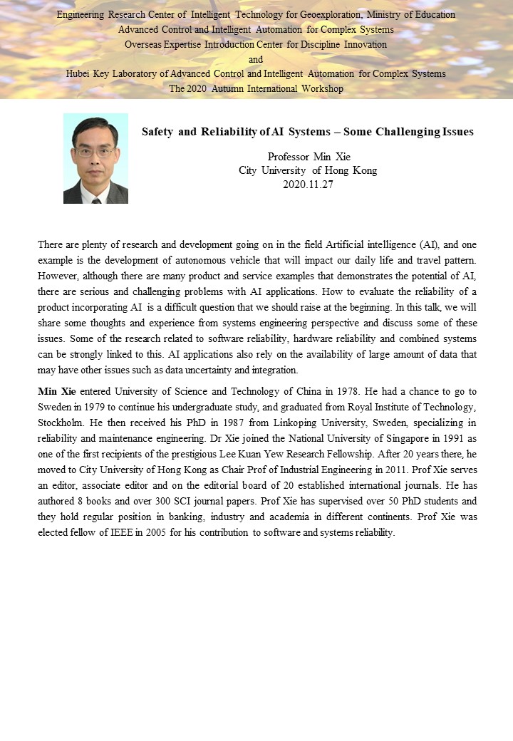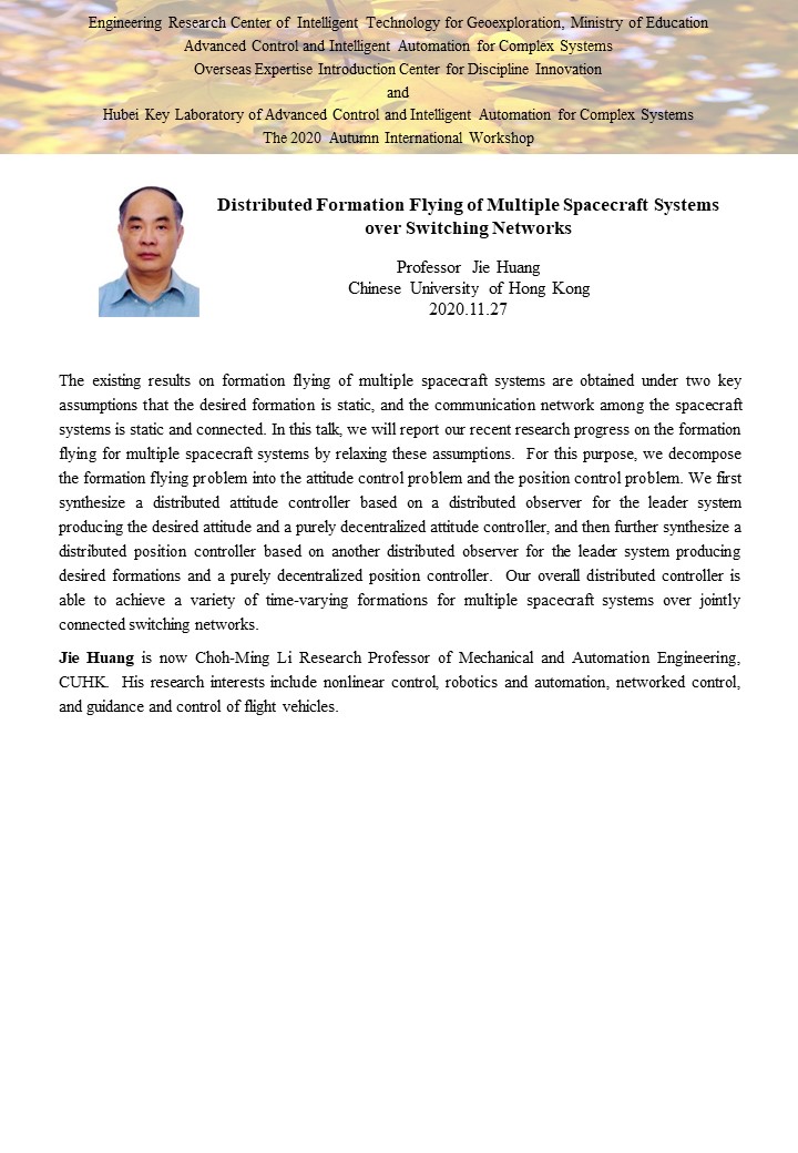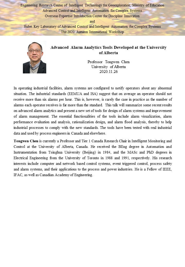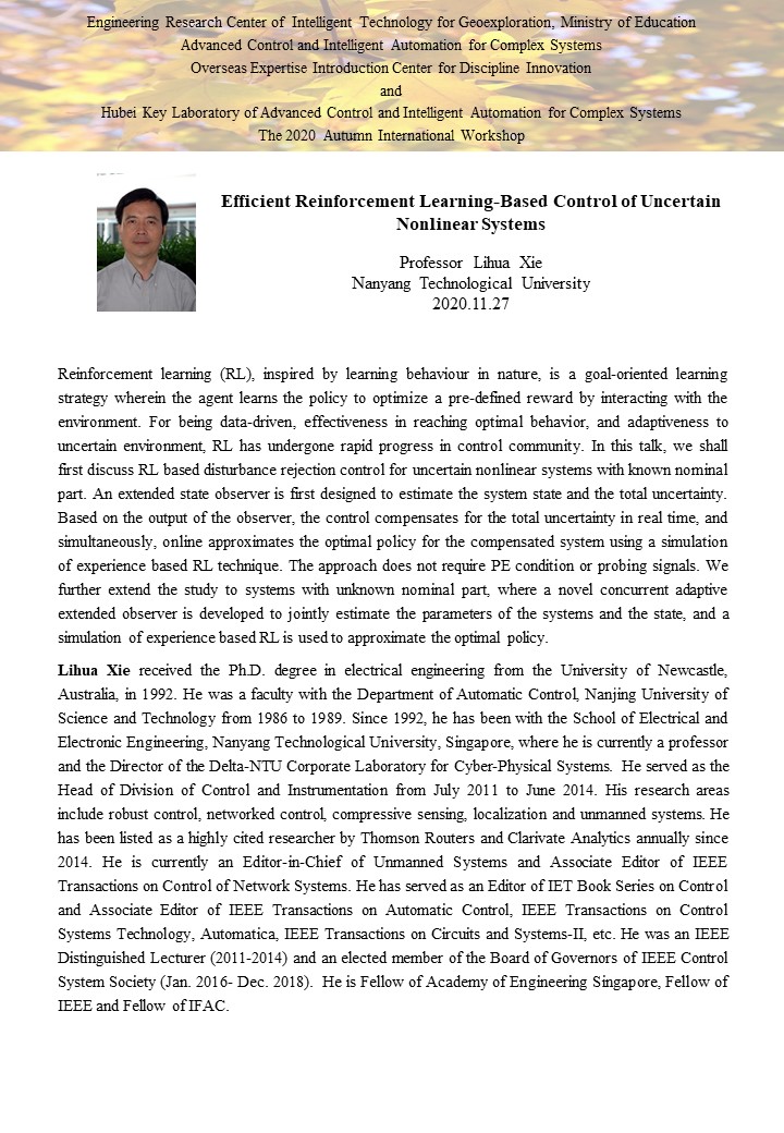 复杂系统先进控制与智能自动化2020年秋季国际学术研讨会