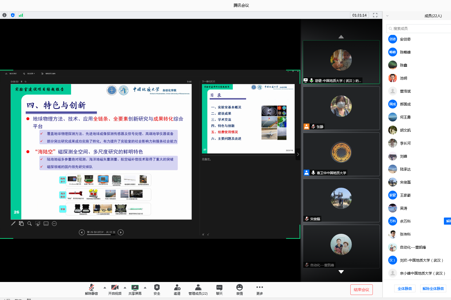 召开复杂系统先进控制与智能自动化湖北省重点实验室(以下简称重点实验室)实验室建设、开放基金项目结题验收会议。会议采用腾讯会议方式举行,学院党政负责人、院学术分委员会成员、省重点实验室和开放基金负责人及其成员参加了验收会议。