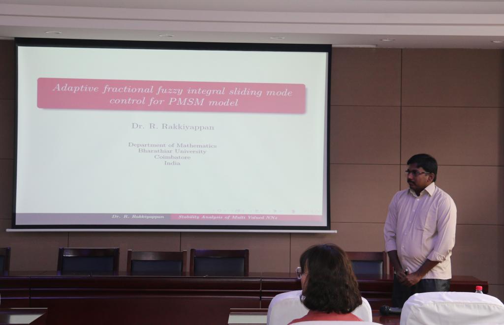 作了题为《Adaptive fractional fuzzy integral sliding mode control for PMSM model》的学术报告。