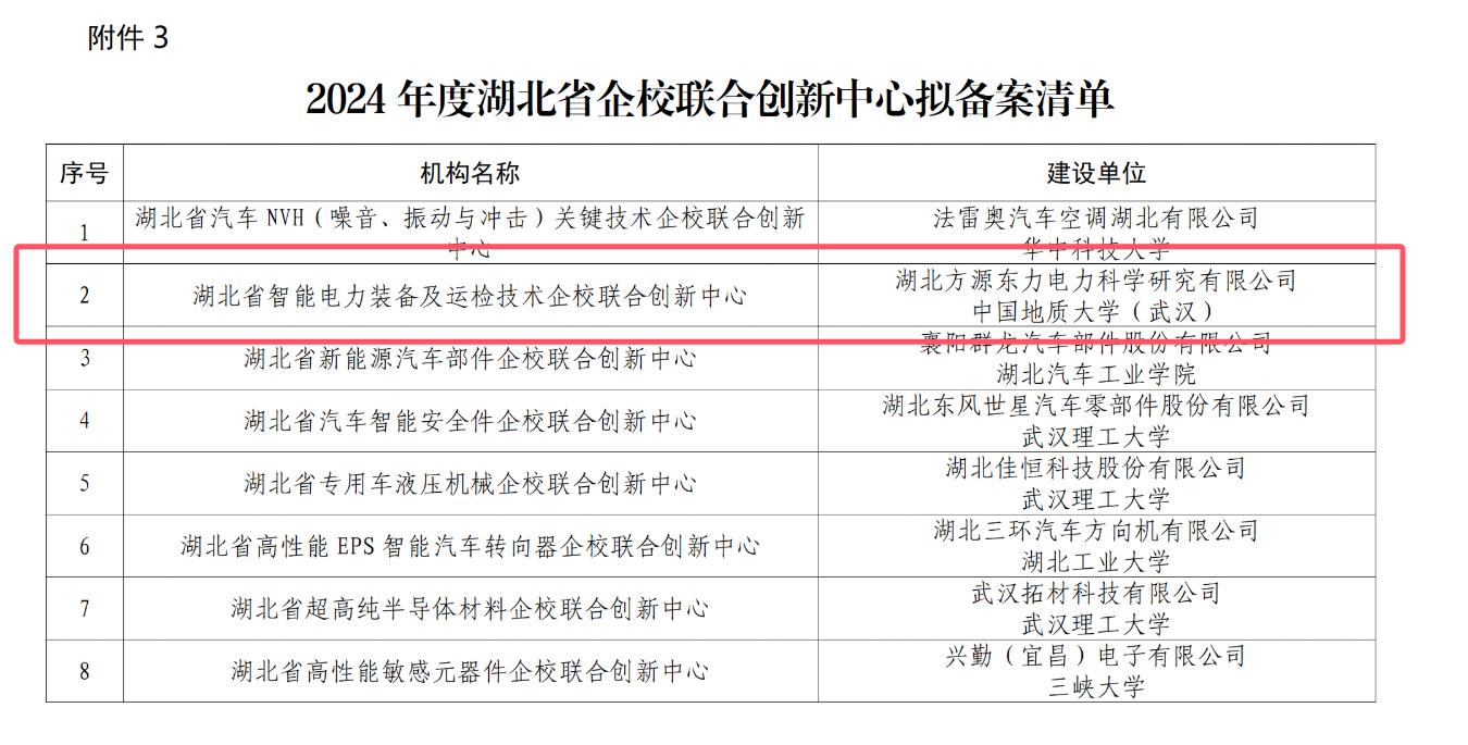 近日,湖北省科学技术厅公布了2024年度湖北省新型研发机构名单,中国地质大学(武汉)与国网湖北电科院方源东力公司合作创建的“湖北省智能电力装备及运检技术企校联合创新中心”位列其中。