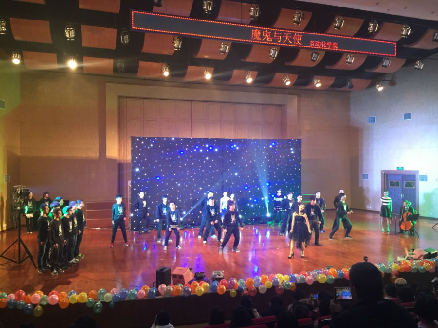 韦德博彩官网 231152班歌舞节目《魔鬼与天使》以男女主角的爱恋为背景,伴随大提琴、小提琴和舞蹈,并融入具有韦德博彩官网 特色的机械舞,给现场观众留下了深刻印象。据悉,此次SuperClass比赛共计12个学院参赛,各学院选拔一支队伍参加决赛,评委由专业老师和学生代表担任。