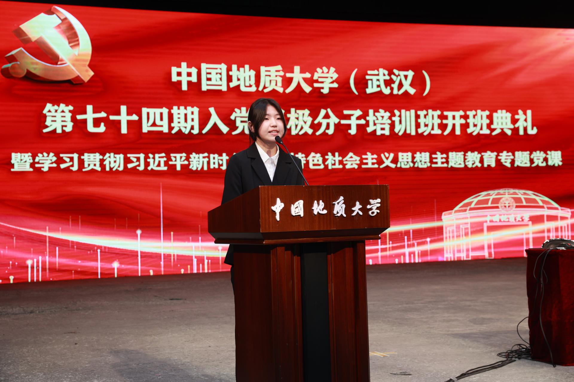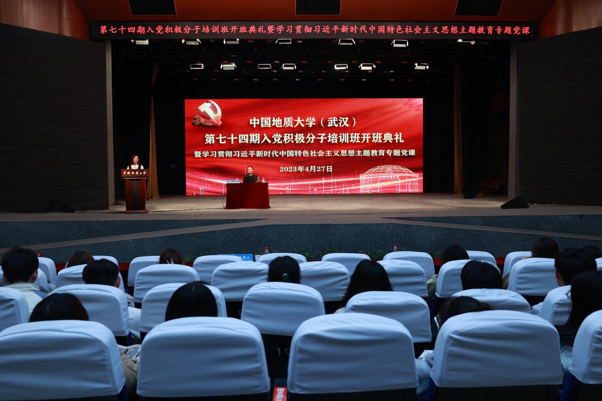 在学校上下深入开展学习贯彻习近平新时代中国特色社会主义思想主题教育之际,为切实提高入党积极分子的理论水平,引导广大青年师生坚定理想信念、践行报国之志,4月27日,中国地质大学(武汉)第七十四期入党积极分子培训班开班典礼暨学习贯彻习近平新时代中国特色社会主义思想主题教育专题党课在弘毅堂举行。