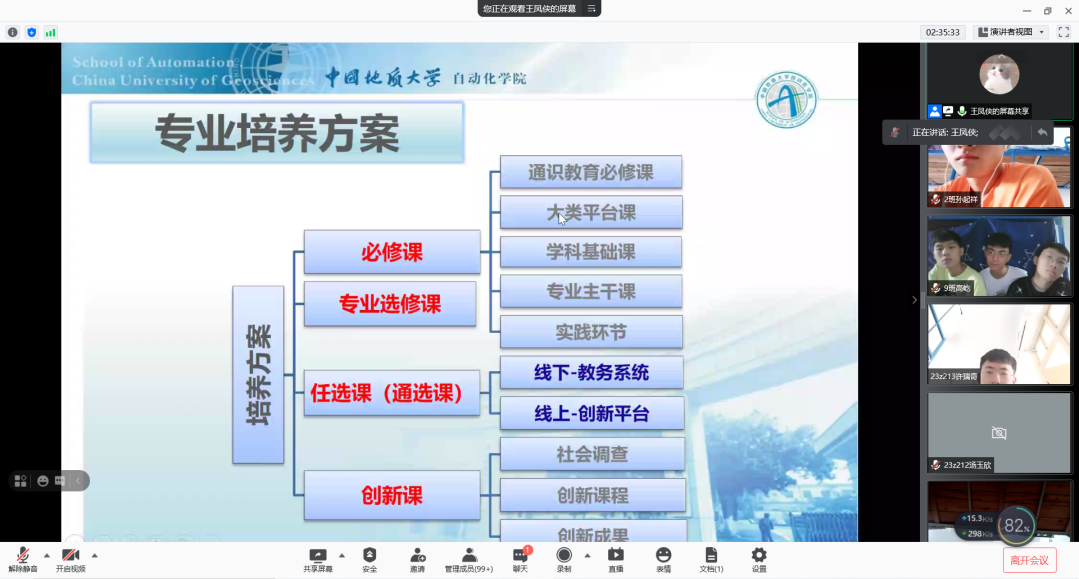 召开2021级新生线上适应教育和专业教育主题大会。学院党委副书记何建新老师、自动控制系系主任安剑奇老师、教务王老师参加此次主题教育大会,会议由辅导员孙静老师主持。学院召开此次教育大会旨在让2021级新生尽快完成从高中生到大学生的身份转变,了解大学生活和学院专业设置及课程安排,更好地适应大学生活。