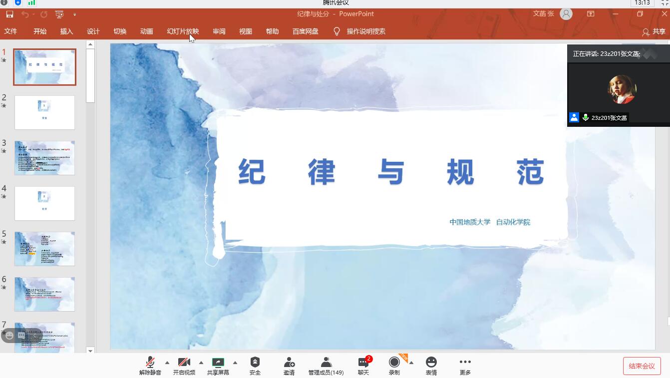 9月26日上午,2020级全体新生在信息楼集中观看大学的第一堂课。首先,黄晓玫书记带来《汇聚爱国强国的磅礴力量——新时代青年学生的使命担当》,带领大家回顾党史,讲述我国的英雄模范故事,号召广大学子学习他们的精神,随后向同学们介绍了在这场疫情面前,我国的制度优势充分体现,并向同学们讲述了地大人的担当与抗击疫情的一个个事迹,尤其是地大青年的表现,值得我们称赞与学习。随后,傅安洲教授向同学们讲述了高等教育史与我校校史,带领同学们了解地大的历史,更好的开展今后的学习,转变角色,努力学习,承担社会责任。