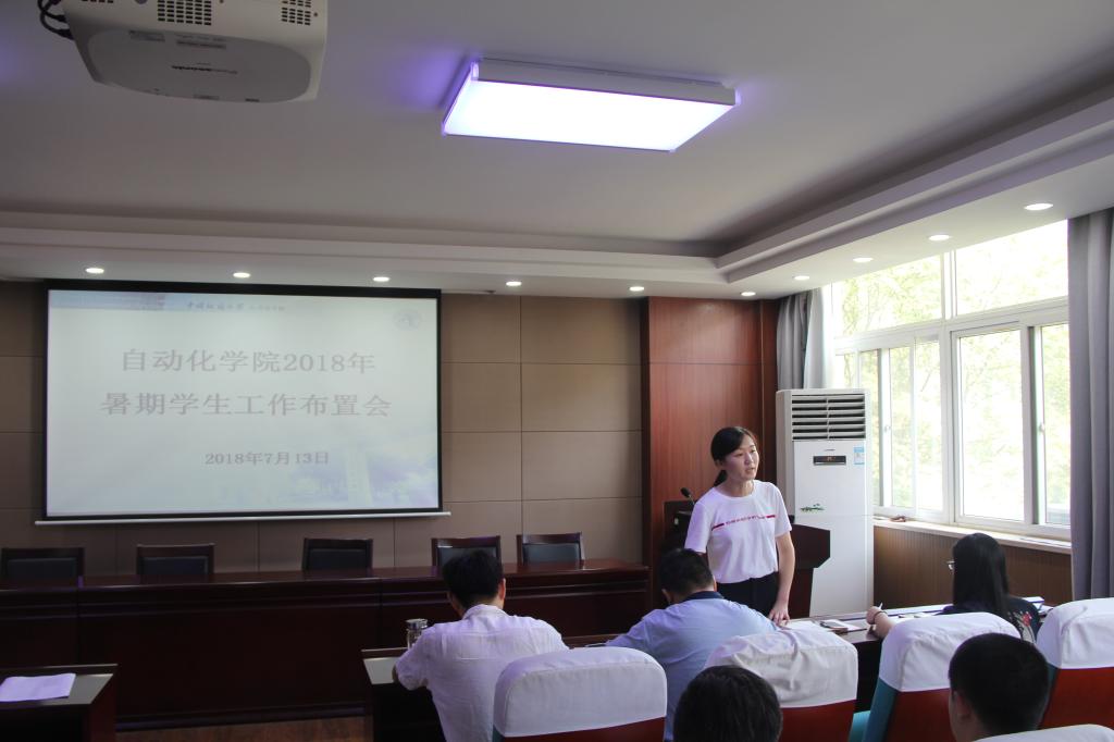 2018年暑期学生工作布置会在信息楼310报告厅召开。党委副书记何建新,团委书记谭文伦,辅导员许彦、刘一荻出席会议,许彦老师主持会议。