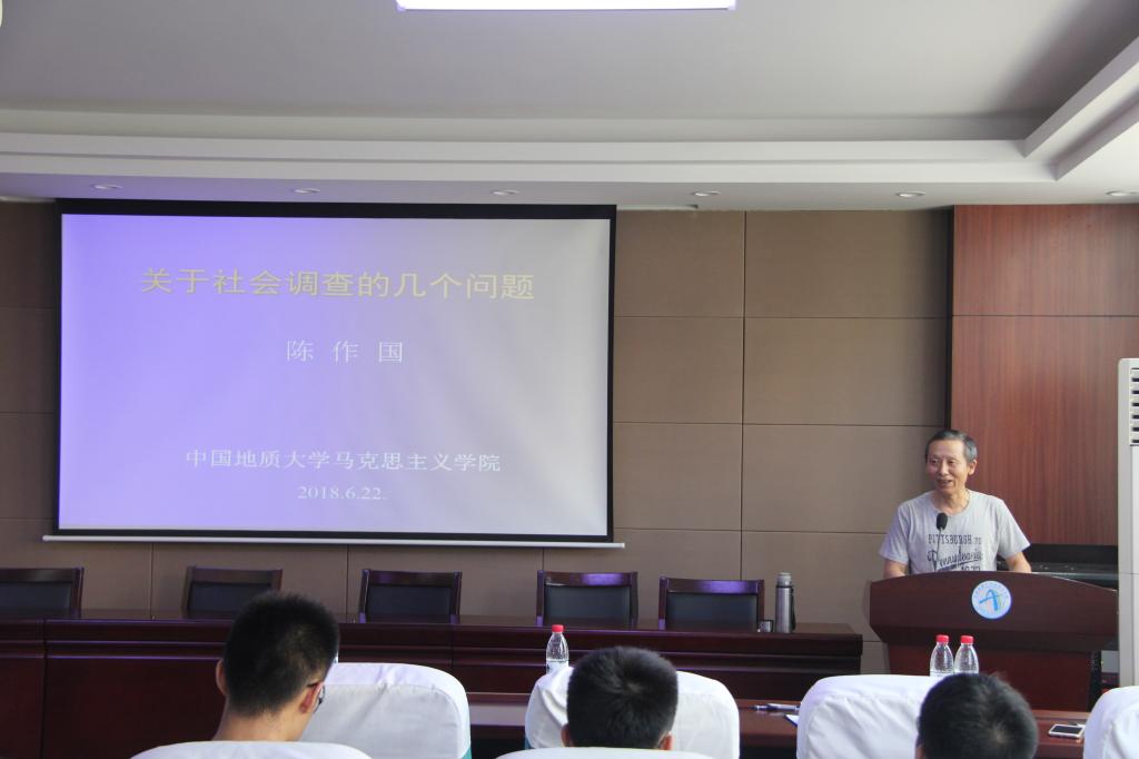 陈作国老师从社会调查的作用、程序等八个方面详细讲授了社会调查的知识。