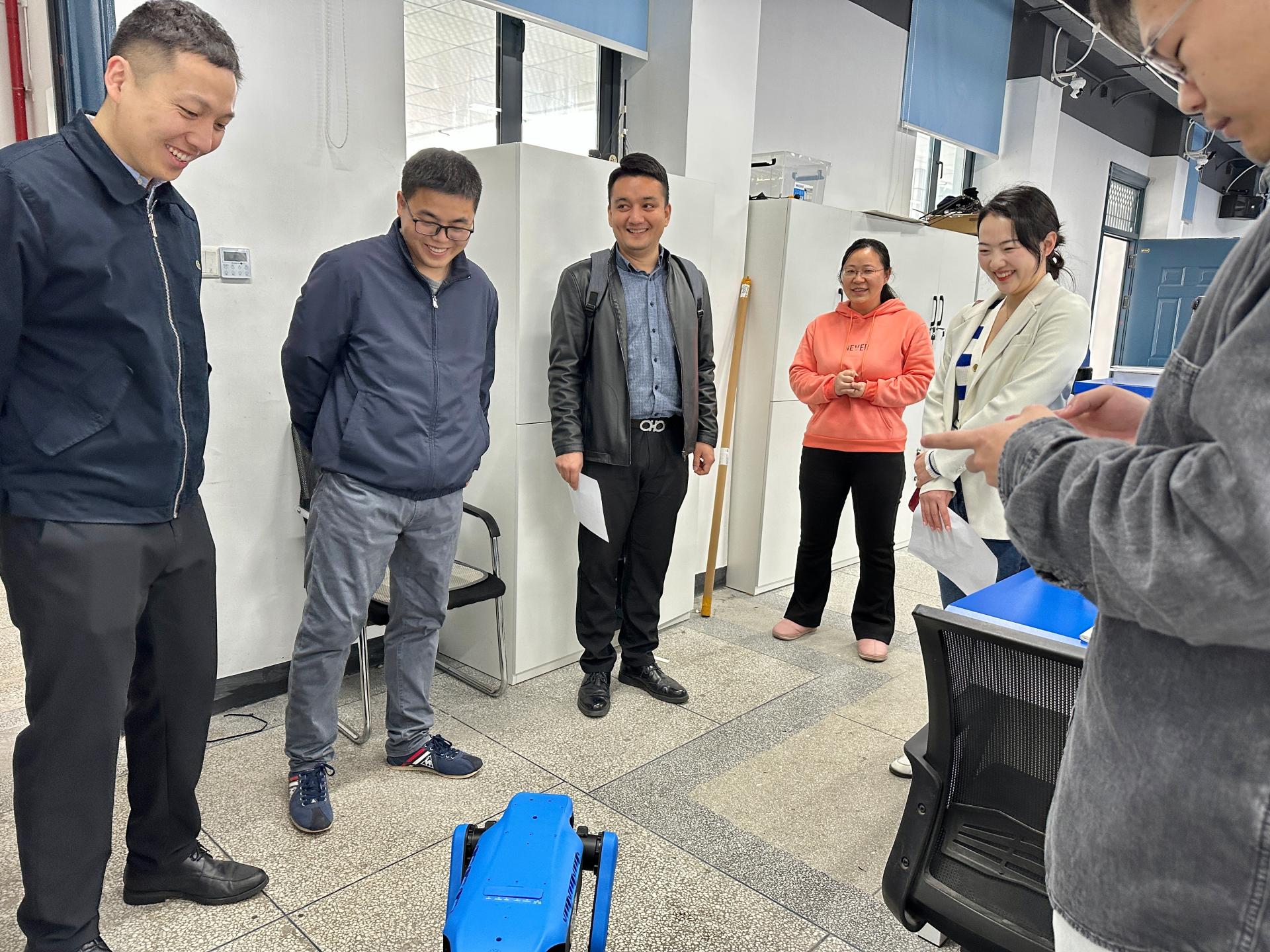 交流会前,李少杰一行参观了学院依托教三楼建设的创新创业分基地,走访了机器人创新实验室、青创空间等场域,王向东对分基地的建设背景、运营概况及未来规划做了详细的介绍。学院依托湖北电工电子实验教学示范中心、湖北省计算机实验教学示范中心、湖北省大学生电子信息科技创新基地,以教三楼602室等空间作为依托,以期建成集实验教学、科技创新、双创实践多功能为一体的“一站式”场域。期间,侏罗纪电子协会指导老师赵娟对机器人创新实验室作了介绍,协会会长刘虹良现场演示了同学们参加中国大学生计算机设计大赛智能挑战赛的作品。
