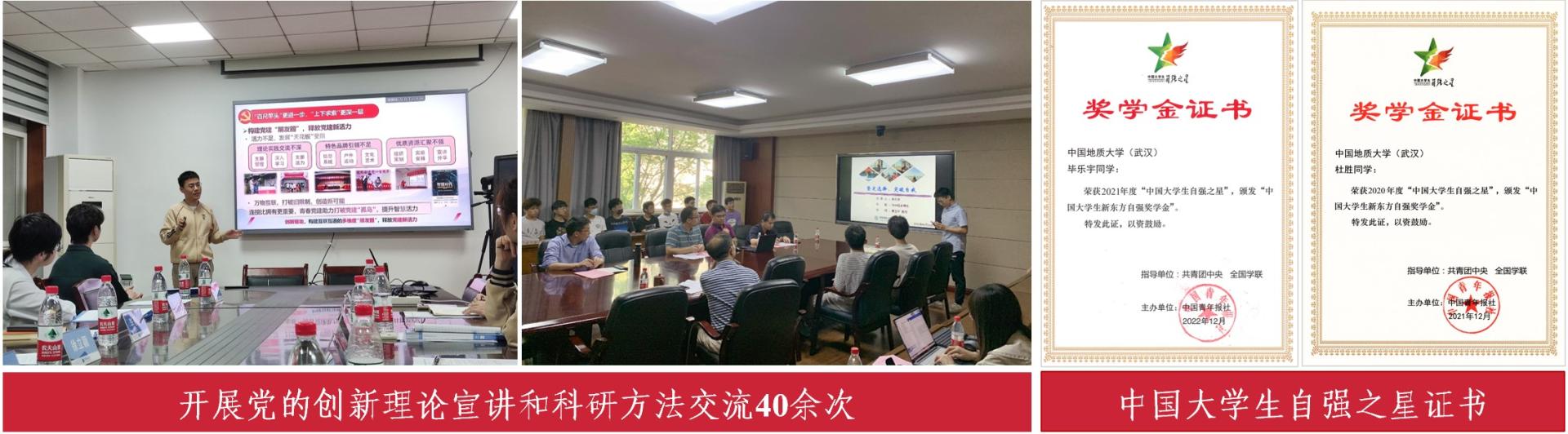 勤于探索、勇于实践。他携手团队以信息技术赋能党支部建设,200多个日夜熬战,无数次的论证、推倒,无数次的解构和建构,“青春向党”智慧党建系统在团队的共同努力下成功上线并公益运行,辐射校内外30余个学生党支部,助力基层党建走“新”更走“心”。为进一步推开基层党建的信息化“窗口”,他与团队聚焦基层党建“智慧+”开展实地调研,发放有效问卷1100余份,足迹遍布20多个高校、企业和村镇,不断凝聚“红色合伙人”,扩大党建“朋友圈”,团队获评省级社会实践优秀团队,事迹被中国青年网、湖北高校思政网等主流媒体报道30余次。支部连续3年获校级先进基层党组织,入选全省高校党建工作样板党支部培育创建单位。(通讯员:王向东、黄兰华)