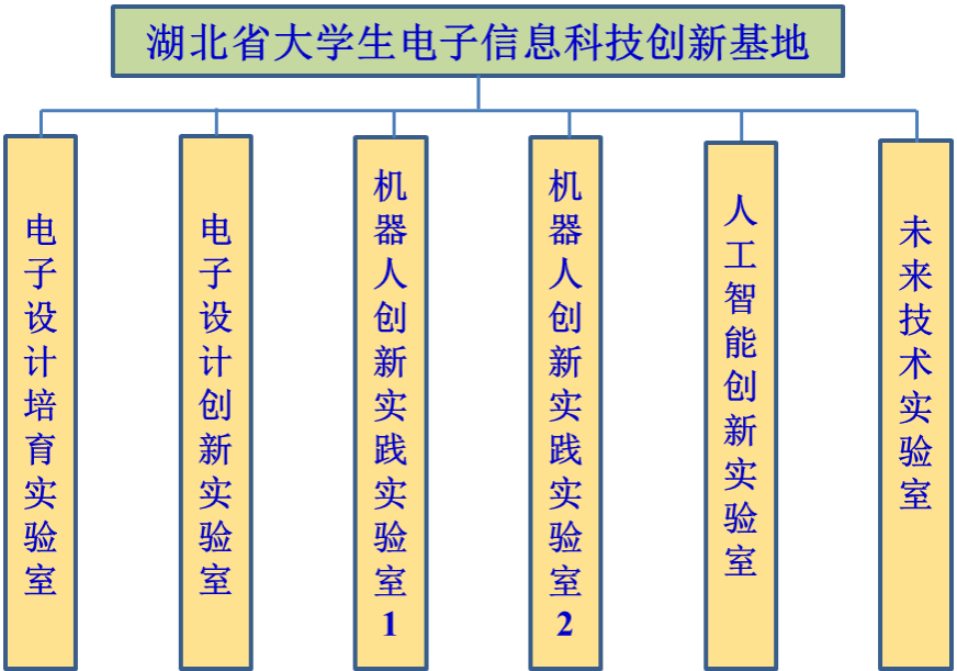 湖北省大学生电子信息创新基地(以下简称“创新基地”) 在信息技术教学实验中心的统一规划下,秉持“以赛促教,以赛育人,赛学相长”的实践育人特色致力于为全校电子信息类专业学生提供一个开放、共享、高效的实践创新平台。该基地旨在培养学生的创新能力、实践能力和团队协作能力,为学生提供丰富的实验资源和参与高水平科技竞赛的机会,推动我校电子信息类学科的发展