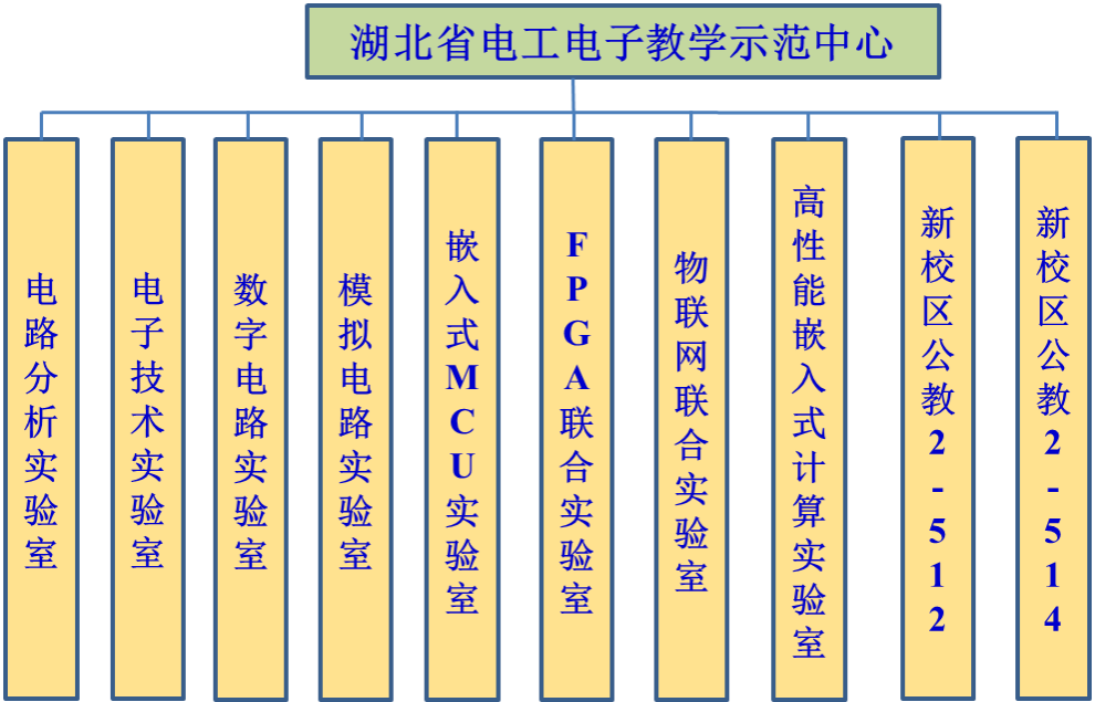 湖北省电子电工实验教学示范中心致力于为全校电子信息类专业学生提供一个开放、共享、高效的实践教学平台和丰富的实验资源,推动我校电子信息类学科的发展实验室现有人员8人。实验室位于南望山校区未来城校区,总面积900余平方米,共有10个实验室。这些实验室装备了先进的实验设备,设备台套数已经超过3000台套,为学生提供了宽敞、良好的实践场所和充足的实践资源。根据学校教学计划安排,实验室积极配合相关院系的任课老师,承担6个学院、9个专业的实验课程、课程设计和上机实习,年实验教学工作量超过30万人时数,覆盖学生超过5000人。