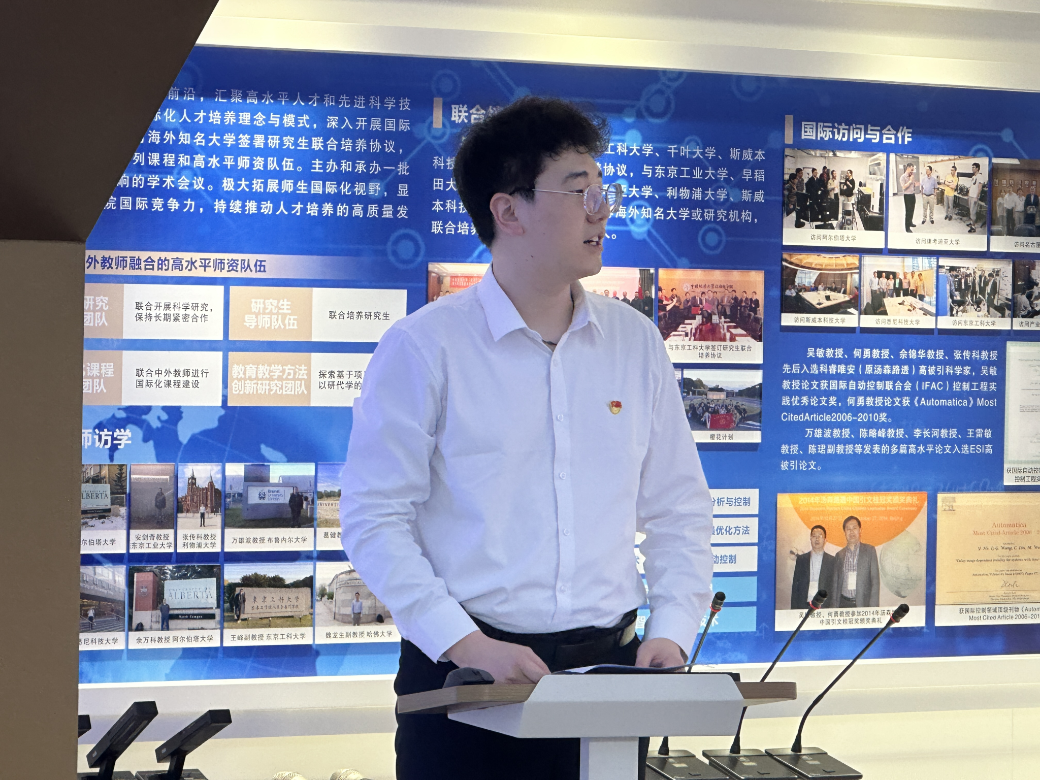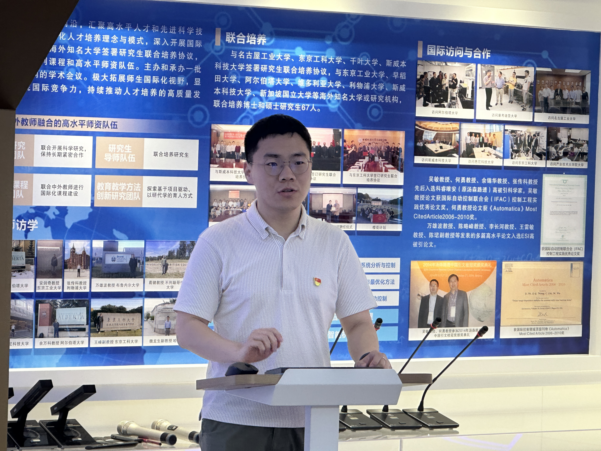 随后,全国党建工作样板支部控制科学与工程博士生第一党支部(以下简称“博一支部”)书记闻博昱分享了支部建设情况和所获成效,介绍了支部“学习型、创新型、服务型、智慧型、引领型”的工作目标和“党建+新一代信息技术”的建设理念。